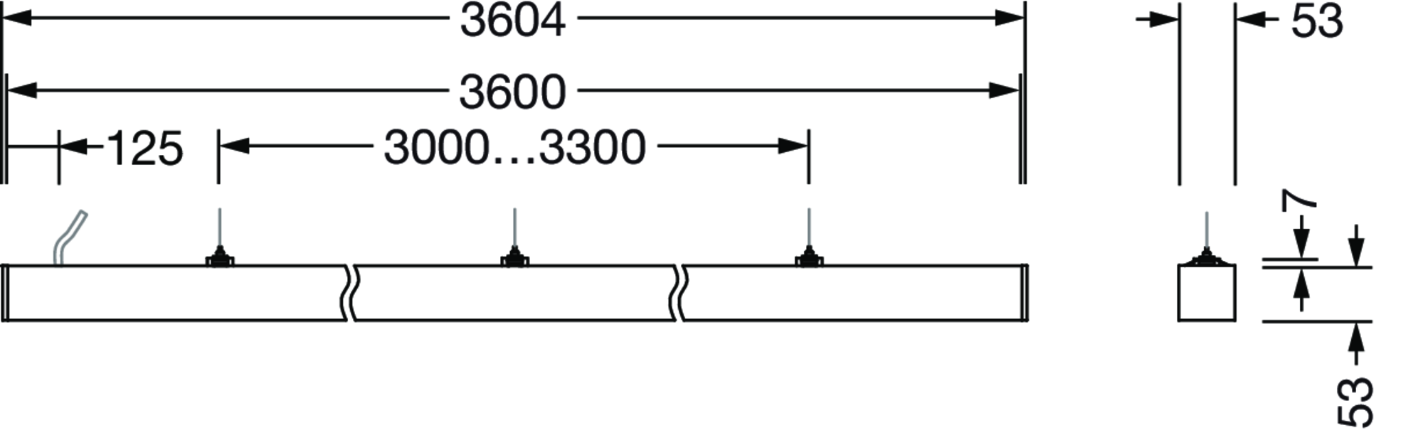 kontorarmatur, trafikkhvit (RAL 9016), DALI 2, 17730lm, 830, 3604x53mm, Tilkobling: klemme
