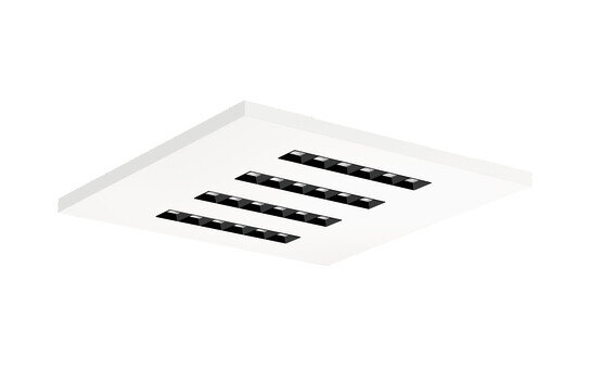 Silica 21 Square, Office-Leuchte, primäre Lichtlenkung mit Linse, aus PMMA, primäre Entblendung mit Reflektor, aus PC, schwarz, BAP65 (L= 3000cd/m²), Lichtaustritt: direkt strahlend, primäre Licht­charakteristik: symmetrisch, Montageart: Einlegemontage, LED, Bemessungs­lichtstrom: 4.600lm, Licht­ausbeute: 144lm/W, Lichtfarbe: 830, Farb­temperatur: 3000K, Vorschaltgerät: DALI 2, mit Klemme, 5polig, Netz­anschluss: 220..240V, AC, 50/60Hz, Bemessungs­leistung: 31,9W, Leuchten­gehäuse, aus Stahlblech, lackiert, verkehrsweiß (RAL 9016), Modul: M625, Länge: 622mm, Breite: 622mm, Höhe: 33mm, Schutzart (gesamt): IP20, Schutzklasse (gesamt): SK I (Schutzerdung), Prüfzeichen: CE, ENEC, VDE, zul. Betriebsumgebungstemperatur: -20..+40°C, Norm: EN 50419, Verpackungs­einheit: 1 Stück