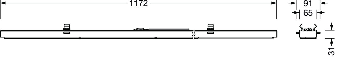Trunking Flex 31, Leuchteneinsatz, aus Alu-Strangpreßprofil, lackiert, verkehrsweiß (RAL 9016), Länge: 1.172mm, Breite: 91mm, Höhe: 53mm, LED Bemessungslichtstrom: 6.400lm, Lichtfarbe: 840, SDCM (Standard Deviation of Colour Matching)MacAdam ≤ 3 SDCM (initial), Vorschaltgerät: EIN/AUS Multilumen, mit Systemverbindung: Buchse, Netzanschluss: 220..240V, AC, 50/60Hz, Bemessungsleistung: 40W, Lichtstrom an der Leuchte einstellbar in vier Stufen (3420/4540/5580/6630lm), Anschlussleistung je nach Lichtstromeinstellung (20/26/33/40W), primäre Lichtlenkung mit Linse, aus Kunststoff, primäre lichttechn. Abdeckung: Abdeckung, aus PMMA, Lichtaustritt: direkt strahlend, Schutzart (gesamt): IP20, Schutzklasse (gesamt): SK I (Schutzerdung), Prüfzeichen: CE, UKCA, Schlagfestigkeit: IK02, zul. Umgebungstemperatur für Innenräume: -20..+40°C, Verpackungseinheit: 1 Stück