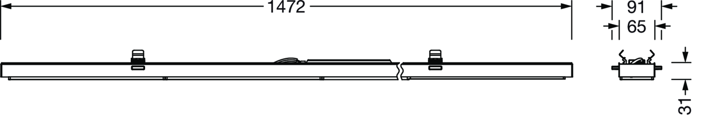 Trunking Flex 31, Leuchteneinsatz, aus Alu-Strangpreßprofil, lackiert, verkehrsweiß (RAL 9016), Länge: 1.472mm, Breite: 91mm, Höhe: 53mm, LED Bemessungslichtstrom: 8.000lm, Lichtfarbe: 835, SDCM (Standard Deviation of Colour Matching)MacAdam ≤ 3 SDCM (initial), Vorschaltgerät: EIN/AUS Multilumen, mit Systemverbindung: Buchse, Netzanschluss: 220..240V, AC, 50/60Hz, Bemessungsleistung: 50W, Lichtstrom an der Leuchte einstellbar in vier Stufen (4130/5610/6850/8000lm), Anschlussleistung je nach Lichtstromeinstellung (25/34/42/50W), primäre Lichtlenkung mit Linse, aus Kunststoff, primäre lichttechn. Abdeckung: Abdeckung, aus PMMA, Lichtaustritt: direkt strahlend, Schutzart (gesamt): IP20, Schutzklasse (gesamt): SK I (Schutzerdung), Prüfzeichen: CE, UKCA, Schlagfestigkeit: IK02, zul. Umgebungstemperatur für Innenräume: -20..+40°C, Verpackungseinheit: 1 Stück