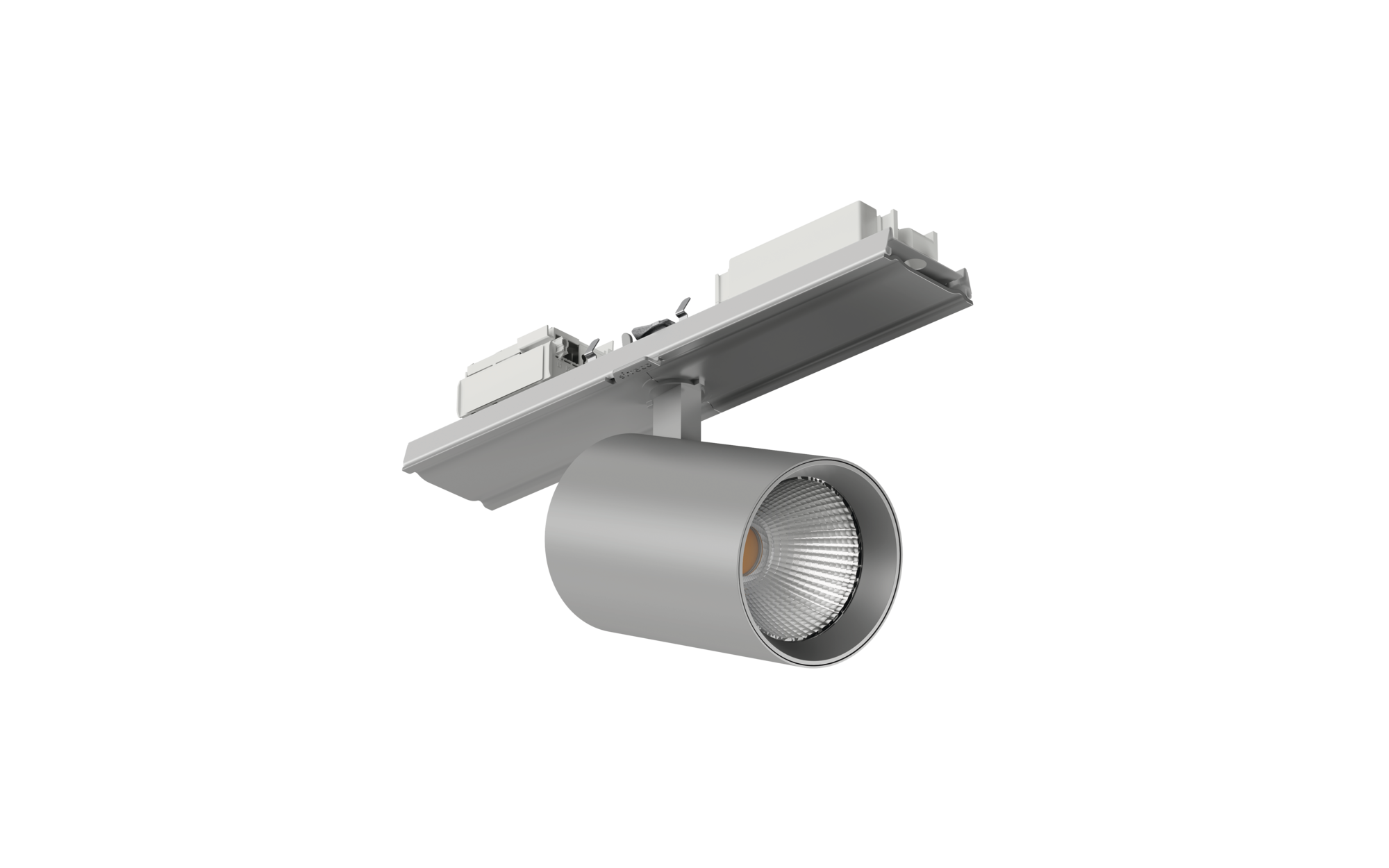 Licross Spot 31, Richtstrahler, Lichtlenkung mit Linse, aus Kunststoff, Abstrahlwinkel: 21°, LED Bemessungs­lichtstrom: 3.650lm, Lichtfarbe: 940, mit Stecker, 3polig, mit Phasenwahl, Netz­anschluss: 220..240V, AC, 50/60Hz, aus Aluminium, weißaluminium (RAL 9006), Länge: 300mm, Durchmesser: 90mm, Schutzart (gesamt): IP20, Schutzklasse (gesamt): SK I (Schutzerdung), Prüfzeichen: CE, Verpackungs­einheit: 1 Stück