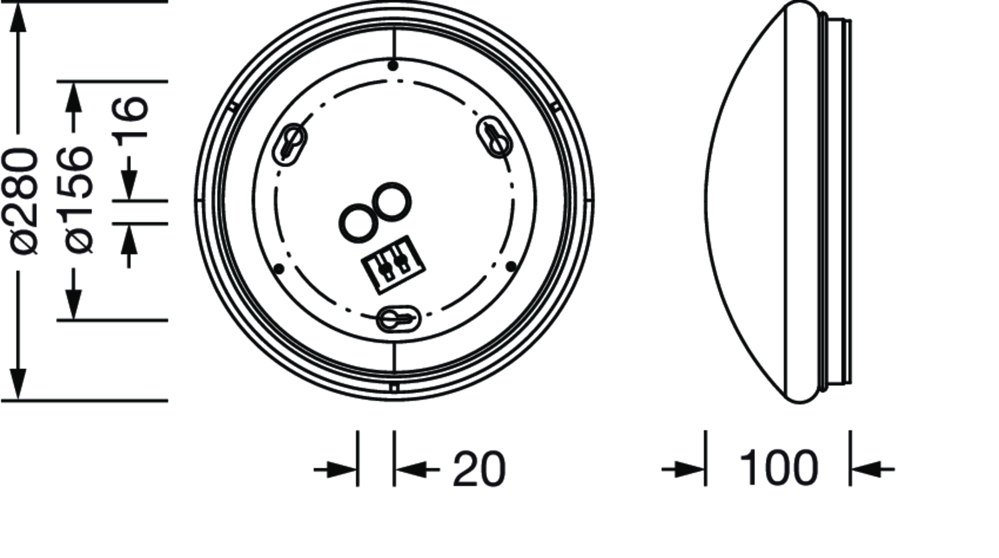 Rondel 41, Wand- und Deckenleuchte, primäre lichttechn. Abdeckung: Abdeckwanne, aus PMMA, opal, Lichtaustritt: direkt strahlend, primäre Lichtcharakteristik: symmetrisch, Montageart: Anbau, LED, Bemessungslichtstrom: 1.350lm, Lichtausbeute: 104lm/W, Lichtfarbe: 830/840, Farbtemperatur: 3000/4000K, Vorschaltgerät: EIN/AUS, mit Klemme, 3polig, max. 2,5mm², Netzanschluss: 230V, AC, 50/60Hz, Bemessungsleistung: 13W, Leuchtengehäuse, rund, aus Stahl, pulverbeschichtet, weiß, Durchmesser: 280mm, Höhe: 100mm, Schutzart (gesamt): IP44, Schutzklasse (gesamt): SK I (Schutzerdung), Prüfzeichen: CE, Schlagfestigkeit: IK02, zul. Betriebsumgebungstemperatur: -30..+40°C, zul. Lagertemperatur: -30..+80°C, Verpackungseinheit: 1 Stück