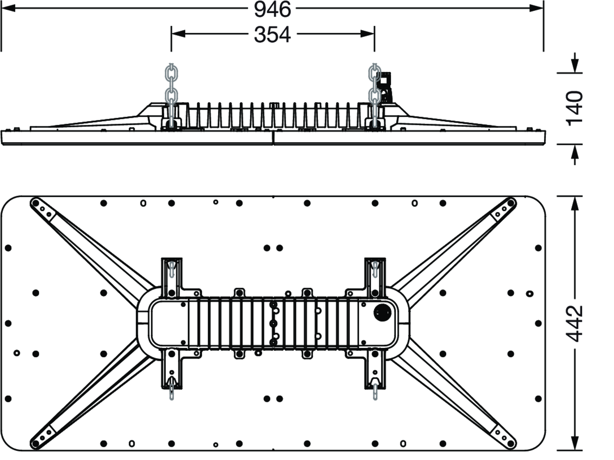 Hallenleuchte Highbay 21 maxi; direkt symmetrisch breit strahlend, Lichtlenkung mit Linse aus PMMA; UGR ≤ 22 (X = 4H | Y = 8H | S = 0,25H | Reflexionsgrade 70/50/20); Lichtstrom: 27.140lm; Lichtfarbe: 865, Farbtemperatur: 6500K, MacAdam ≤ 3 SDCM (initial), Farbwiedergabe: CRI > 80; Lichtausbeute: 188,5lm/W; Bemessungslebensdauer: 75.000h (L80) bei UT= ta max; Ansteuerung: DALI 2; Leuchtenanschluss: Klemme, 5polig, max. 2,5mm² (Leitungseinführung für eine Leitung, Ø 8, 5..16mm); Netzanschluss: 230..240V, AC/DC 0/50..60Hz; Anschlussleistung: 144W; Schutzart (gesamt): IP66; Schutzklasse (gesamt): SK I (Schutzerdung); Schutzzeichen: D; Schlagfestigkeit: IK08; Prüfzeichen: CE, ENEC, VDE, UKCA; Leuchte für Zentralbatterieanlagen gemäß EN 60598-2-22, interne Verdrahtung halogenfrei; Leuchte LABS-Konformität geprüft gemäß VDMA 24364:2018-05; Für den Einsatz in der Lebensmittelindustrie nach den Vorgaben von IFS-Food, HACCP und/oder BRC geeignet; Gehäuserahmen aus Hochleistungskunststoff PA6, verkehrsweiß matt (RAL 9016); Abdeckung aus PMMA; Abmessung (LxBxH): 946 x 442 x 72mm; zul. Betriebsumgebungstemperatur: -40..+65°C (bei Deckenanbau Reduzierung der zulässigen maximalen Umgebungstemperatur um 5°C); Verpackungseinheit: 1 Stück; (Lieferung ohne Zubehör; Montagezubehör bitte zusätzlich bestellen)