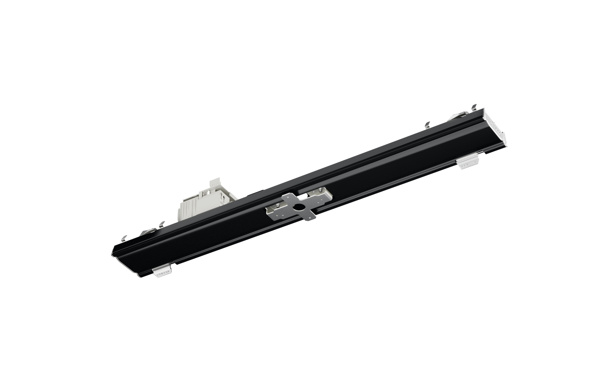 Licross, élément du rail, adaptateur,avec connecteur mâle, 5 broches, avec sélection de phase, raccordement au secteur: 230V, AC, 50/60Hz, borne,5 broches, 2,5mm² max., adaptateur multiple, en tôle d'acier, laqué en bande, noir foncé mat (RAL 9005), pour un degré de protection IP20/IP40, longueur: 500mm, largeur: 64mm, hauteur: 68mm, module multifonction, degré de protection (total): IP20, classe de protection (total): classe de protection I (mise à la terre), marquage: CE, UKCA, unité d'emballage: 1 pièce