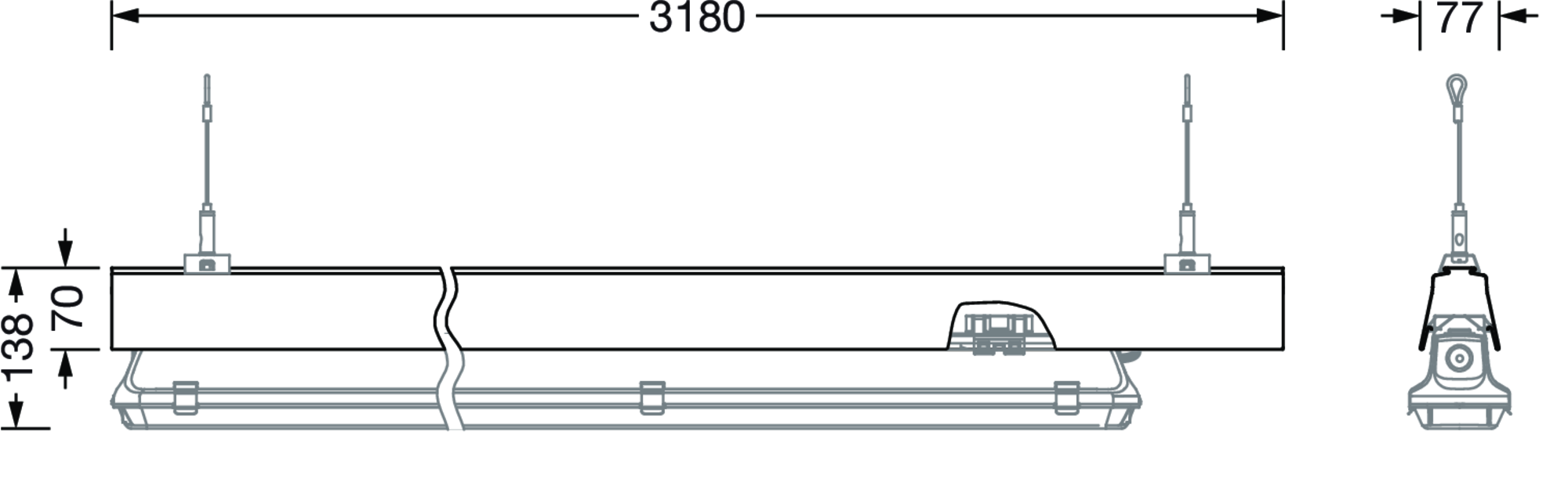 Licross Montageschiene, Montageschiene, aus Stahlblech, verzinkt, bandlackiert, weiß, 2längig, Länge: 3.180 mm, Breite: 64 mm, Höhe: 67mm, Prüfzeichen: CE, Verpackungseinheit: 1 Stück