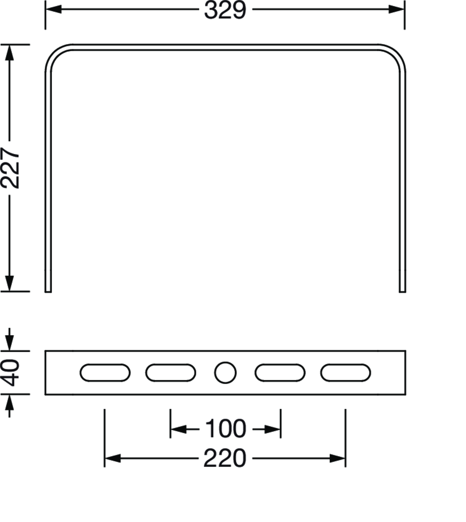 Highbay 31 S, Tragbügel, Montageart: Anbau, Tragbügel, aus Stahl, graualuminium (RAL 9007), Breite: 329mm, Höhe: 227mm, Verpackungs­einheit: 1 Stück