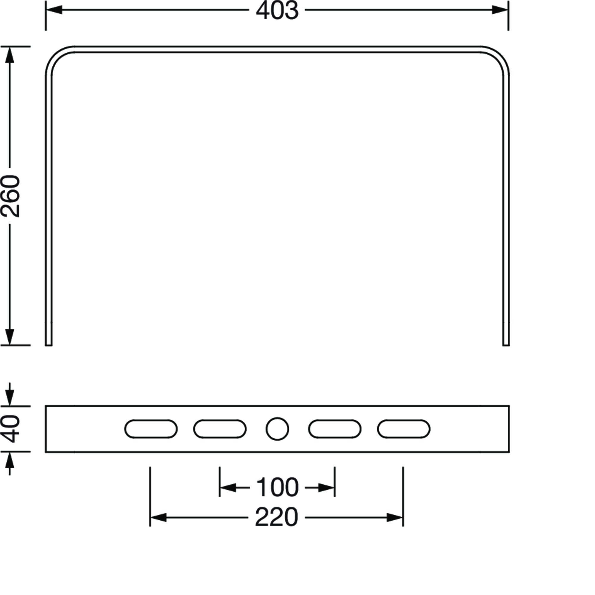 Highbay 31 L, staffa portante, tipo di montaggio: a plafone, staffa portante, in acciaio, alluminio grigiastro (RAL 9007), larghezza: 403mm, altezza: 260mm, unità d’imballo: 1 pezzo