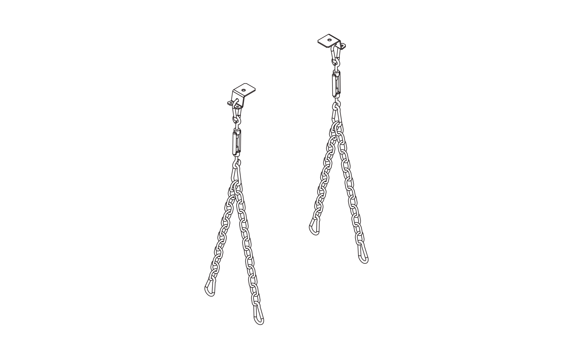 Highbay 11; 2-Punkt-Kettenabhängung, deckenseitig mit 2 Befestigungspunkten; Stahl, verzinkt; inklusive Kettenabhänger, bestehend aus Karabinerhaken, Kette und Spannschloss; für Abhängehöhe: 480mm ±15mm; Verpackungseinheit: 1 Satz