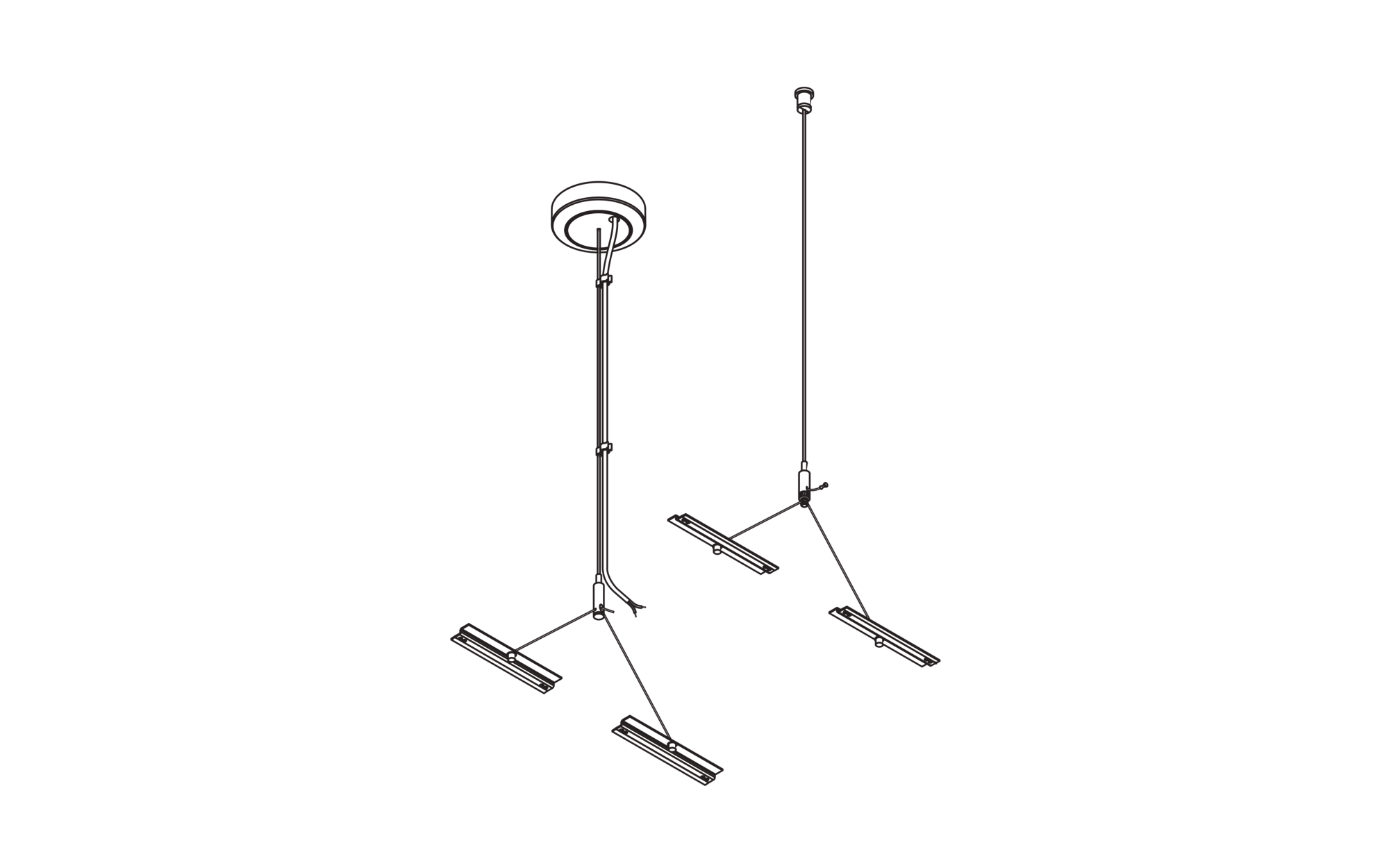 Apollon, Y-Seilabhängung, Deckenhülse, Deckenbefestigungselement, aus Stahl, verzinkt, Baldachin, rund, aus Kunststoff, Seil, aus Stahl, verzinkt, leuchtenseitige Befestigung, aus Stahl, verzinkt, Deckenhülse, aus Stahl, vernickelt, Verpackungseinheit: 1 Satz = 2 Stück