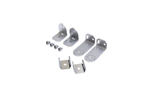 Edelstahl (V2A), bestehend aus je 2x wand- und schienenseitiger Befestigungswinkel, Zylinderkopf-Schraube, Befestigungsclip für Schiene, alle Teile aus V2A/V4A