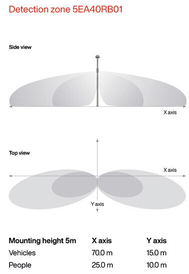 Erfassungsbereich max. 15x5m