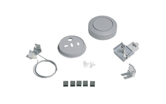 Quadrature Schiene, Seilabhängung, mit mit 4 Klemmen, 1polig, max. 2,5mm² (ohne Anschlussleitung), Deckenbefestigungselement, aus Stahl, verzinkt, Baldachin, rund, aus Kunststoff, Seil, aus Stahl, verzinkt, schienenseitige Befestigung, aus Stahl, verzinkt, Verpackungseinheit: 1 Stück