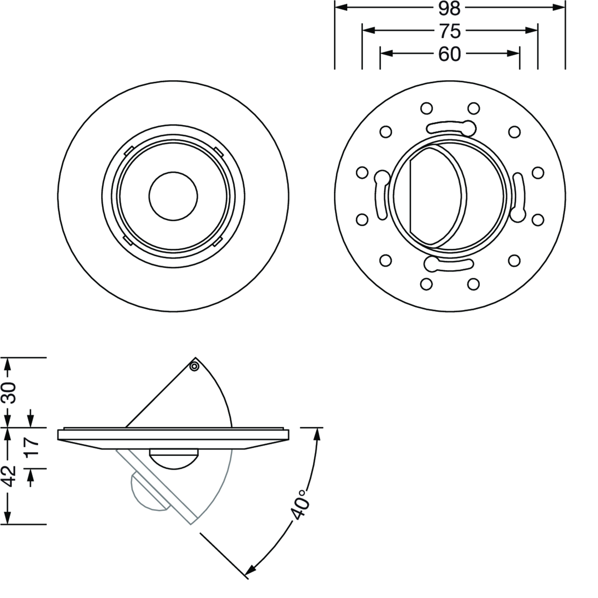 Erfassungsbereich min. ø3,5m, max. ø6,0m