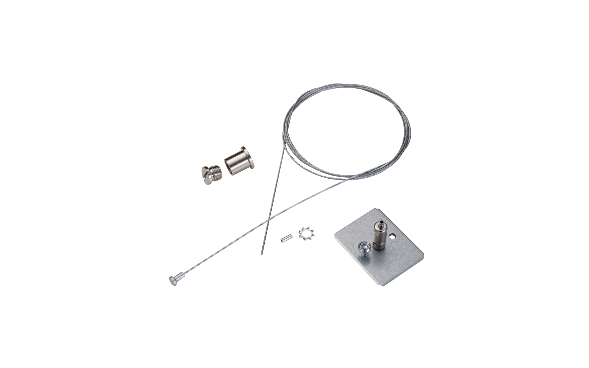 Vega 11 Schiene, Seilabhängung, Deckenhülse, aus Stahl, vernickelt, Seil, aus Stahl, verzinkt, Verpackungs­einheit: 1 Stück