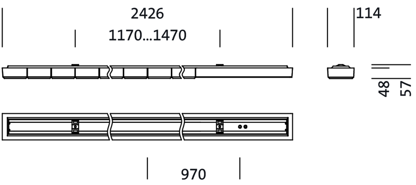 Office-Leuchte, verkehrsweiß (RAL 9016), DALI, 7230lm, 840, 2426x114mm, Anschluss: Klemme