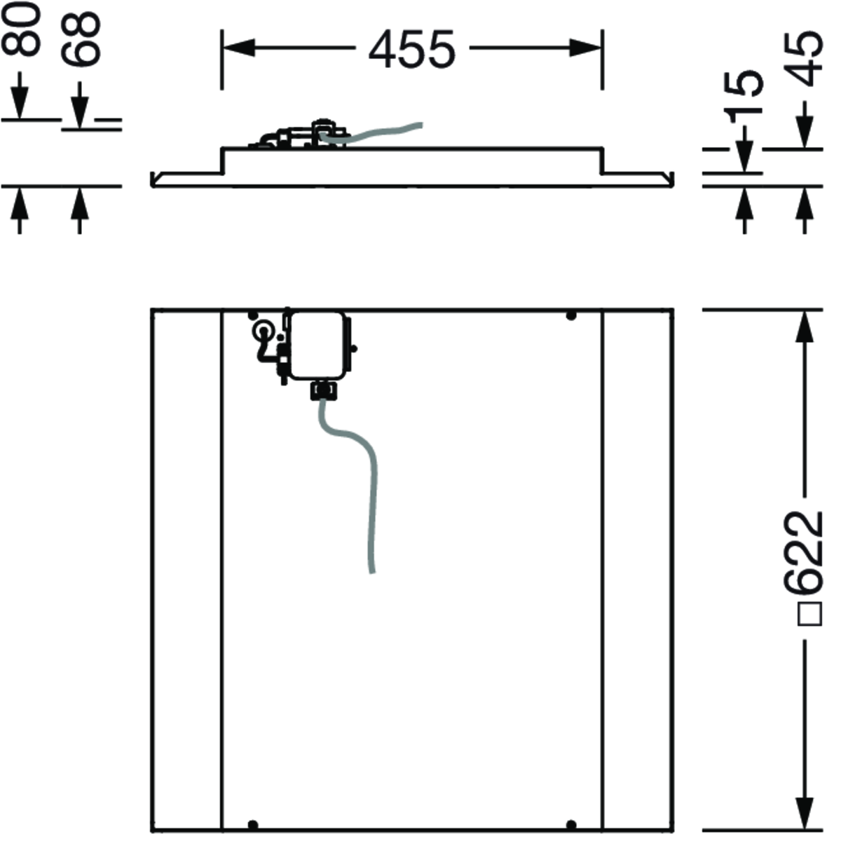 Office-Leuchte, verkehrsweiß (RAL 9016), DALI, 6400lm, 840, 621x621mm, für M625, Anschluss: Klemme