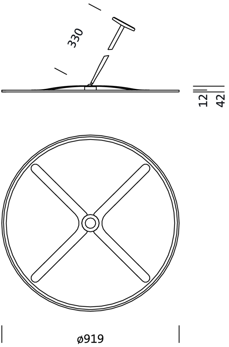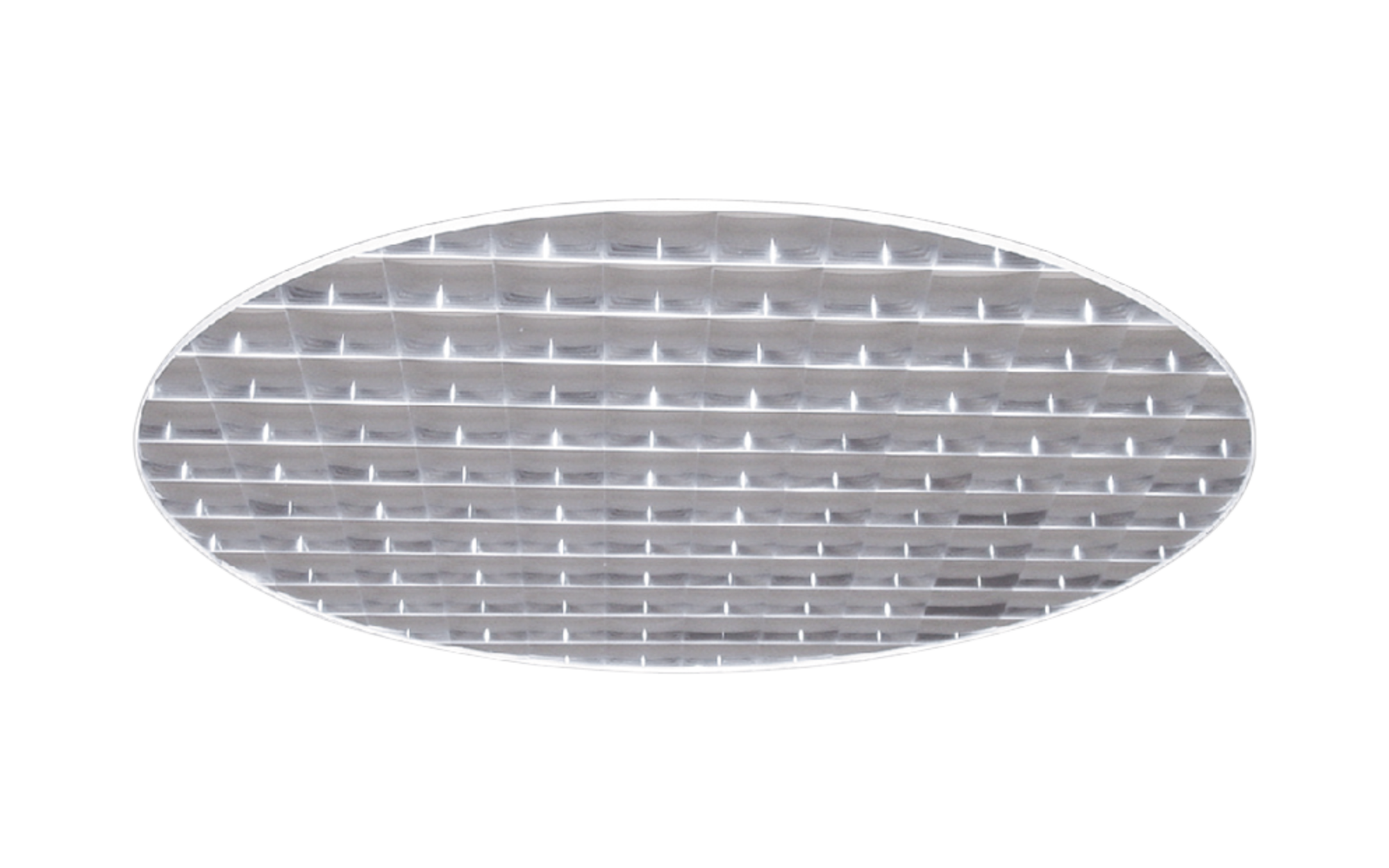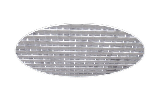 Spiegel-Werfer-Reflektor, für SITECO Mirrortec Indoor, Kugelgelenk-Pendelabhängung, Gehäuse, kreisförmig, aus Aluminium, lackiert, weißaluminium (RAL 9006), Fresnel Reflektor 100, aus PMMA, Alu bedampft, hochglänzend, Lichtpunkt-Zerlegung, Fresnelstruktur, Durchmesser: 900 mm