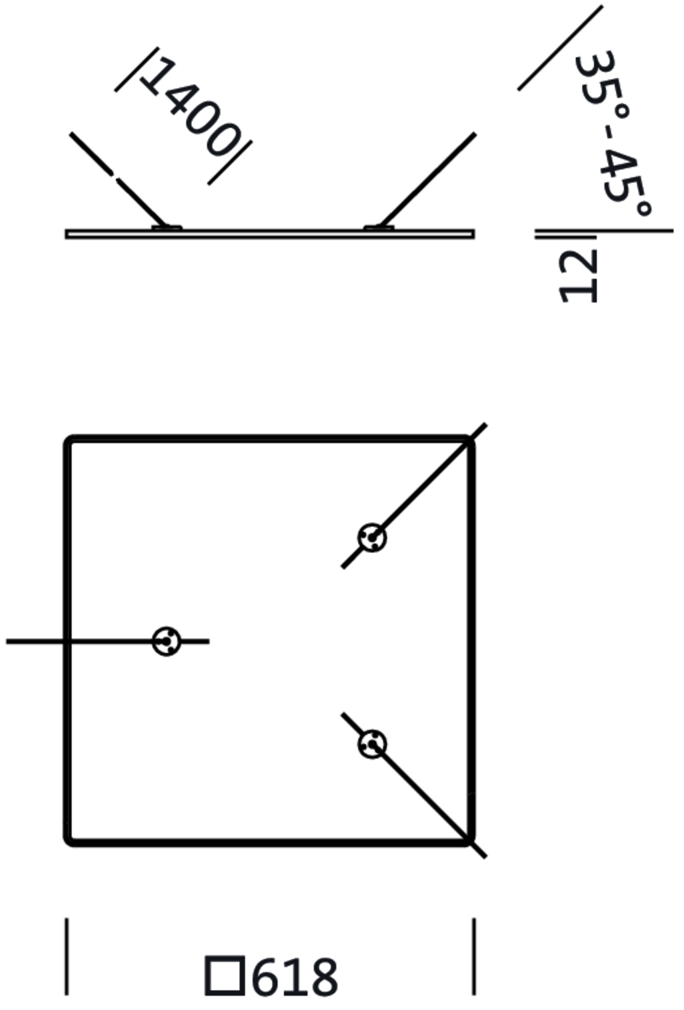 secondary reflector, for SITECO Mirrortec Indoor, wire hanger, housing, square, of aluminium, coated, metallic grey (RAL 9006), fresnel reflector 100, of PMMA, aluminized, highly specular, light point resolution, fresnel structure, length: 600 mm, width: 600 mm