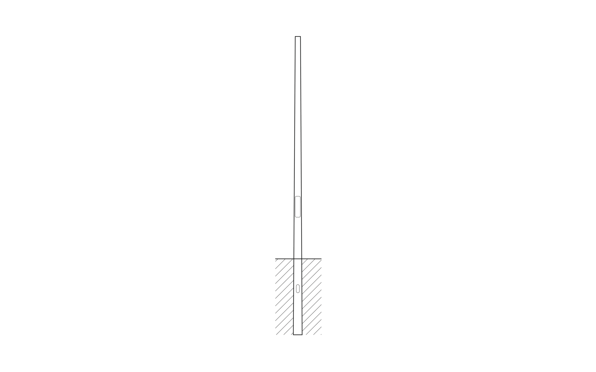 Mast, Mast, konisch rund, aus Stahl, pulver­beschichtet, SITECO eisenglimmer (DB 702S), Höhe: 8,0m, Zopfmaß: 76mm (Aufsatz), Erdstück: h= 1200mm / Ø= 168mm, Norm: DIN EN 40, Verpackungs­einheit: 1 Stück