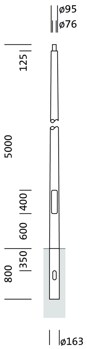 Mast, Mast, konisch rund, aus St 37-2, pulverbeschichtet, SITECO eisenglimmer (DB 702S), Höhe: 5,0m, Zopfmaß: 76mm (Aufsatz), Erdstück: h= 800mm / Ø= 163mm, Norm: DIN EN 40, Verpackungseinheit: 1 Stück