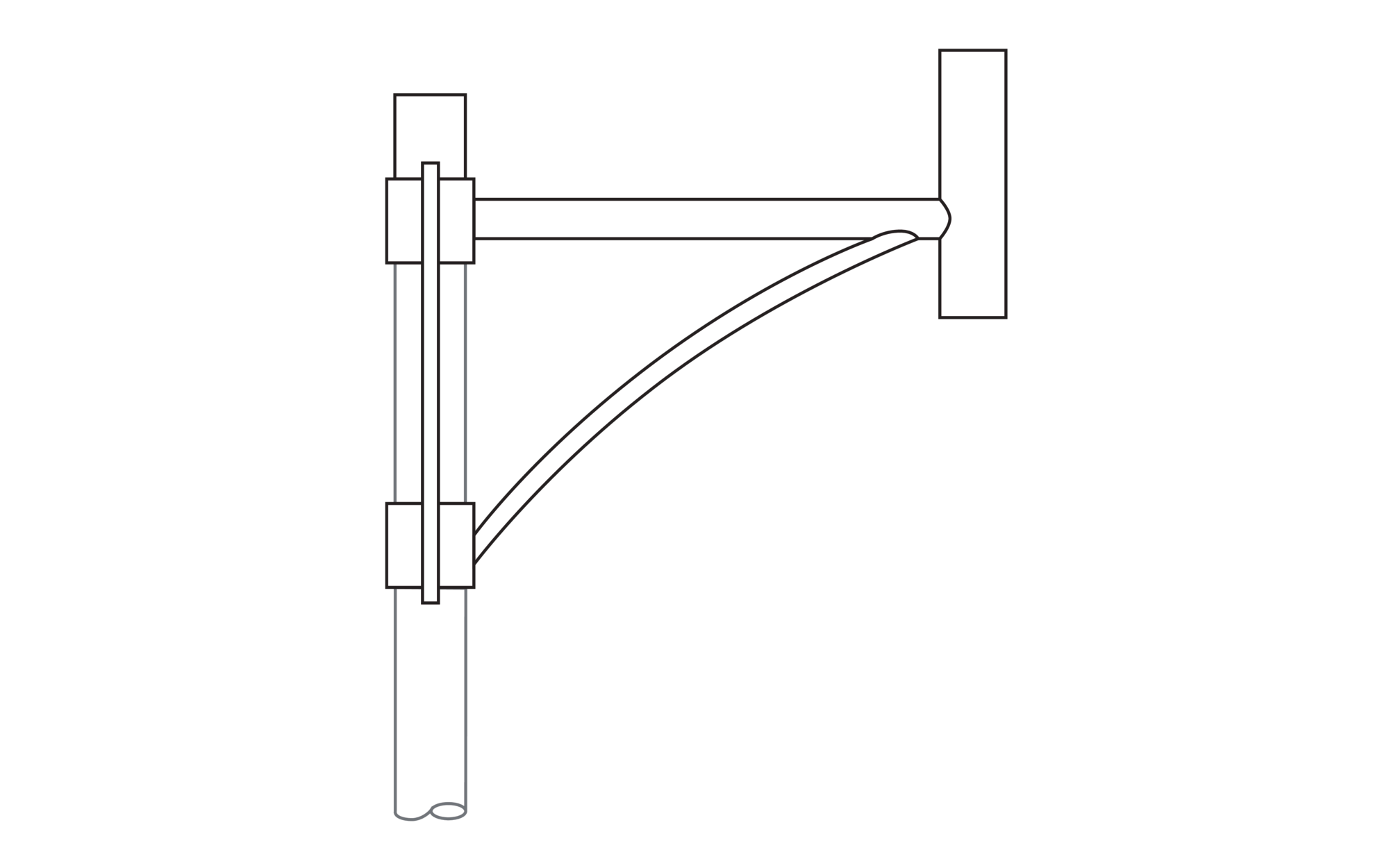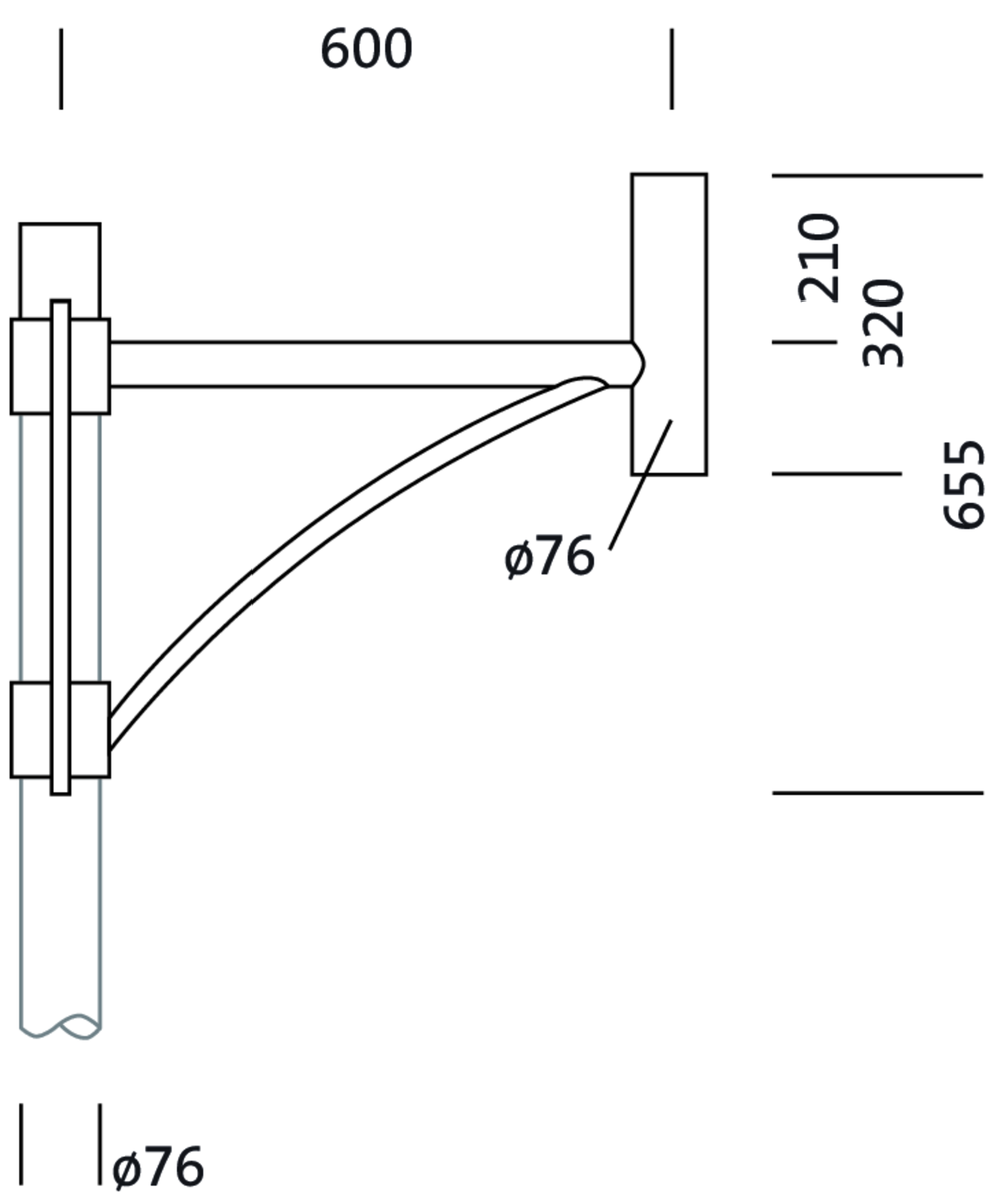 Schwinge, Mastausleger, Designausleger, aus Stahl, verzinkt und lackiert, SITECO eisenglimmer (DB 702S), 1armig, mit integriertem Mastabschluss, Zopfmaß: 76mm (Aufsatz), Auslegermaß: 600mm, Verpackungseinheit: 1 Stück