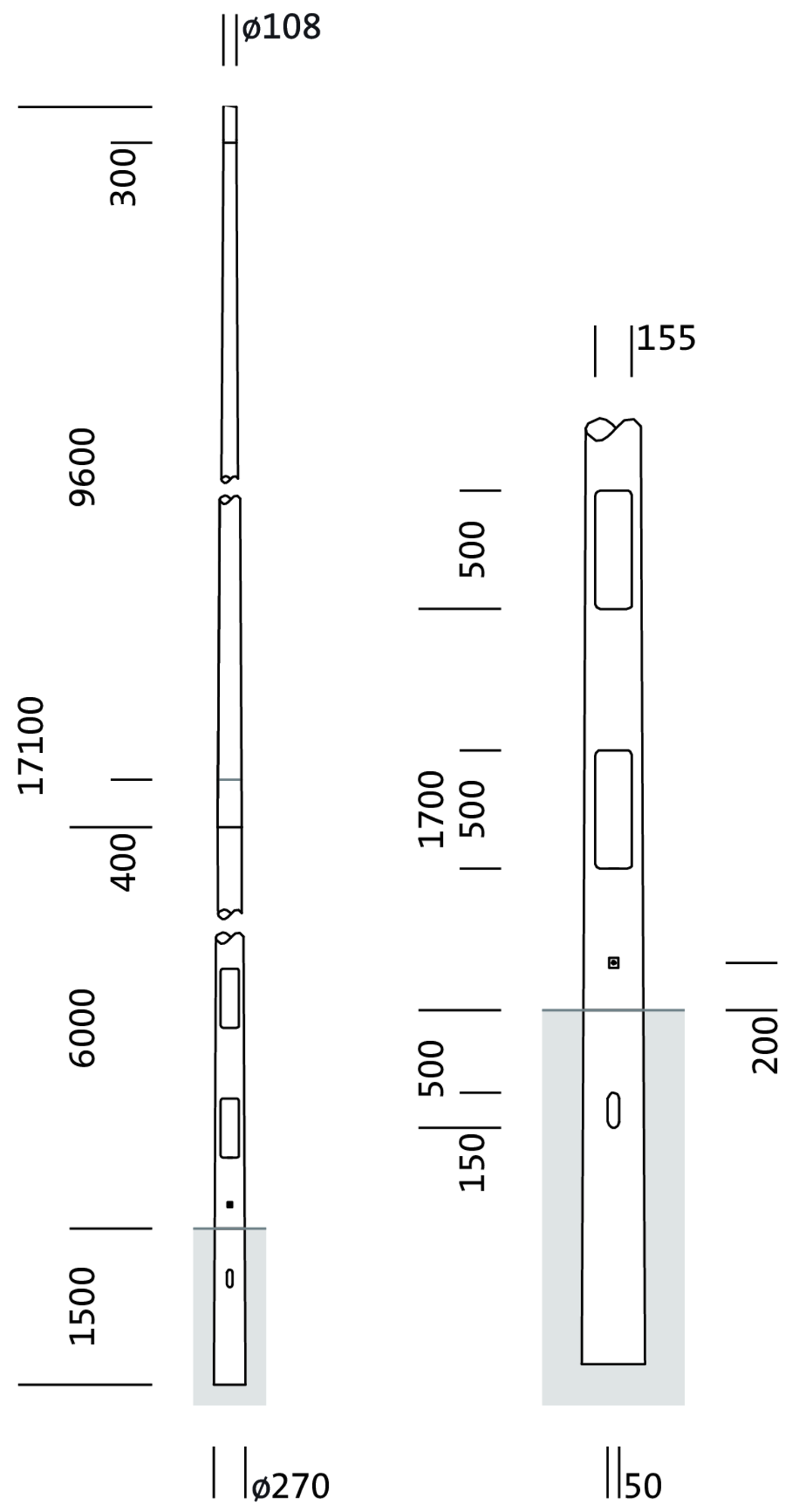 kandelaber, kandelaber, konično okroglo, material: jeklo, pocinkano, tip 1: direktni natik, premer: 108 mm, višina: 16m, nastavek: 108mm, enota pakiranja: 1 kos