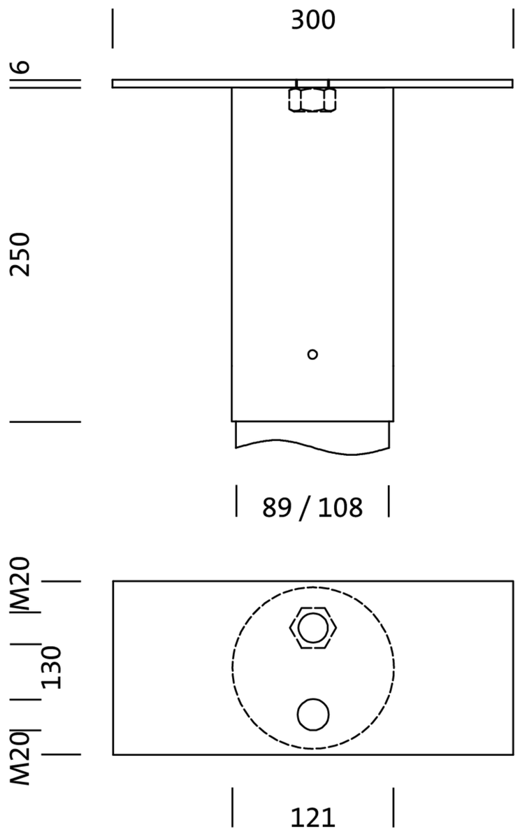 Floodlight FL 11, Floodlight FL 21 midi Baugruppe Montage; Baugruppe Montage mit 1x Traverse für 1 Fluter aus Stahl, verzinkt, Typ 1: Aufsatz, Länge: 300mm / Breite: 130mm / Höhe: 250mm; Zopfmaß: 108mm, industry, public (AL), stadion, sports, traffic, Verpackungs­einheit: 1 Stück