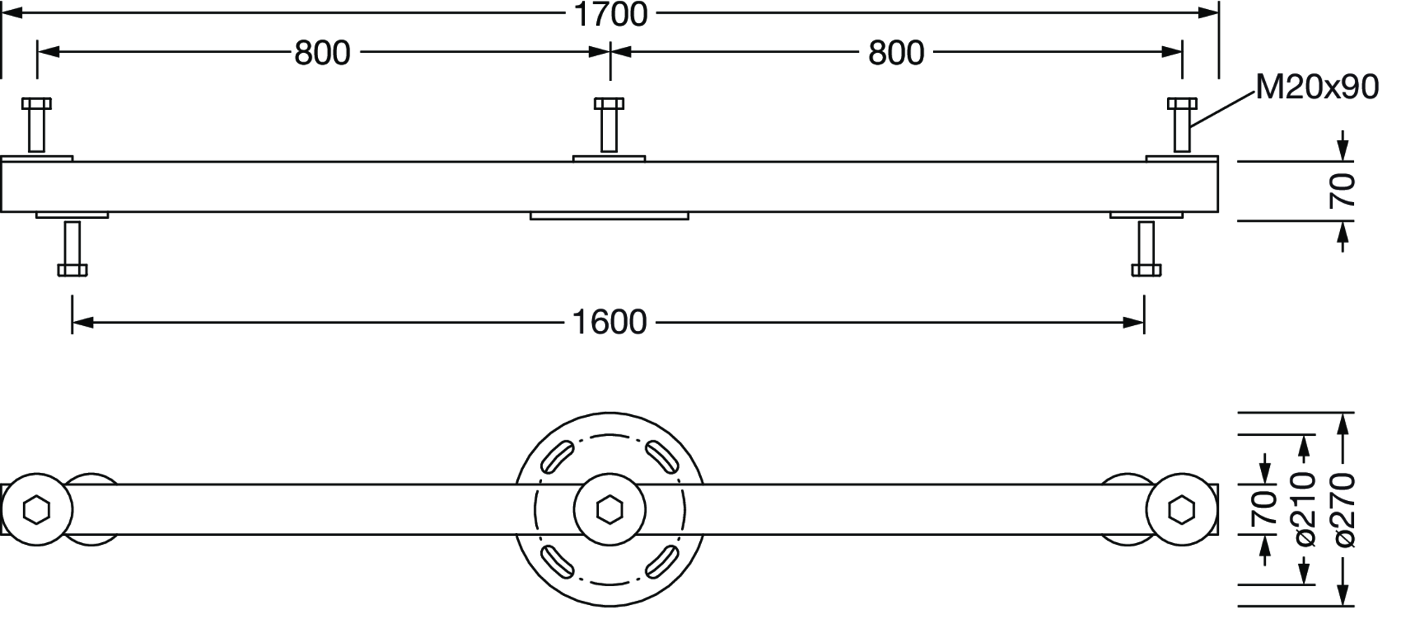 module montage, structure porteuse quintuple, en acier, galvanisé, type 1 : au sommet du mât, pour mât inclinable de 18/20m, pour le montage du Floodlight FL 11, unité d'emballage: 1 pièce