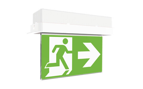 Panik Sign, Rettungszeichenleuchte, aus PC, primäre lichttechn. Abdeckung: Infopanel, Montageart: Einbau, LED, Lichtfarbe: 860, Farbtemperatur: 6000K, Bereitschaftsschaltung, Netzanschluss: 230V, AC/DC, 0/50Hz, Bemessungsleistung: 1W, Gehäuse, aus Kunststoff, weiß, Länge: 343mm, Breite: 128mm, Höhe: 228mm, Klemmbereich: 10..15mm, konventionelle Zentralbatterie, Schutzart (gesamt): IP54, Schutzklasse (gesamt): SK II (Schutzisoliert), zul. Betriebsumgebungstemperatur: 0..+45°C, Verpackungseinheit: 1 Stück
