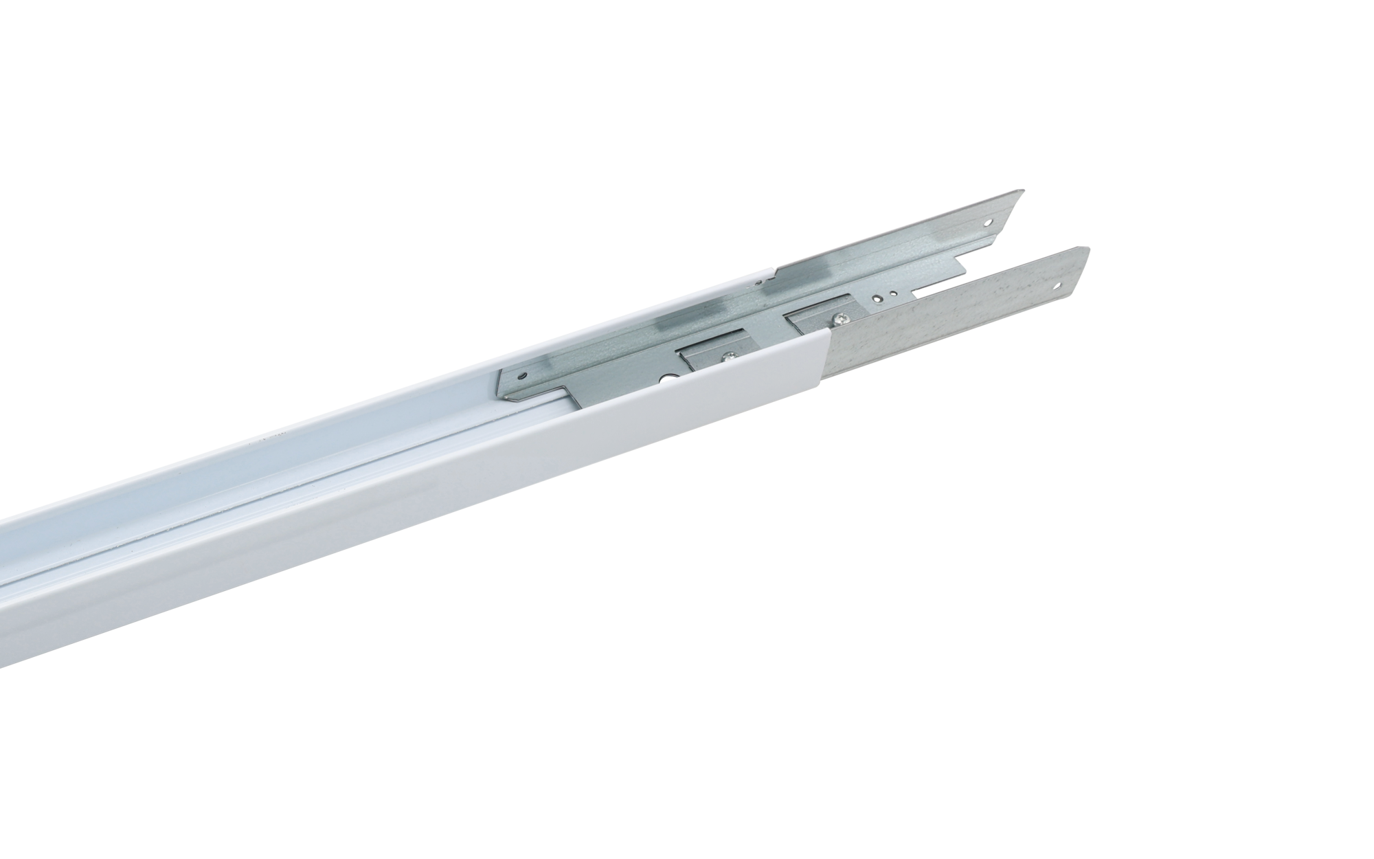 Modario, Tragschiene, aus Stahlblech, lackiert, leuchtenweiß, 1längig, Länge: 1.495 mm, Breite: 58 mm, Höhe: 43mm, Schutzart (gesamt): für Schutzart IP20/IP40, Schutzklasse (gesamt): SK I (Schutzerdung), Prüfzeichen: CE, ENEC, VDE, Norm: EN 60598, Verpackungseinheit: 1 Stück