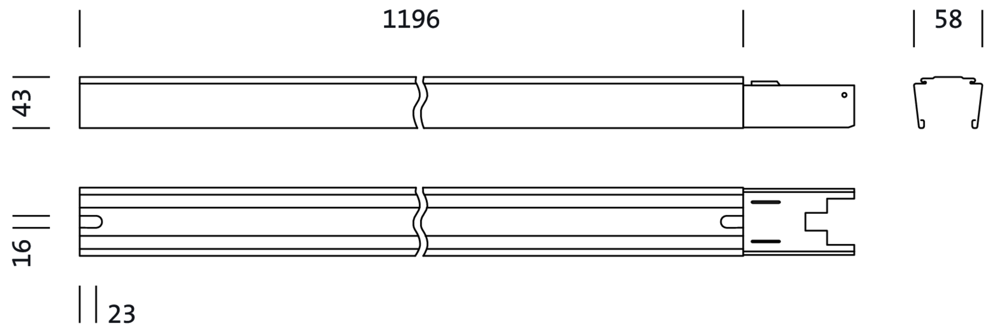 Modario, rail, en tôle d'acier, laqué, blanc brillant, à une longueur, longueur: 1.196 mm, largeur: 58 mm, hauteur: 43mm, câblage continu: 5x 2,5mm², avec borne, 5 broches, 2,5mm² max., degré de protection (total): pour un degré de protection IP20/IP40, classe de protection (total): classe de protection I (mise à la terre), marquage: CE, ENEC, VDE, norme: EN 60598, unité d'emballage: 1 pièce