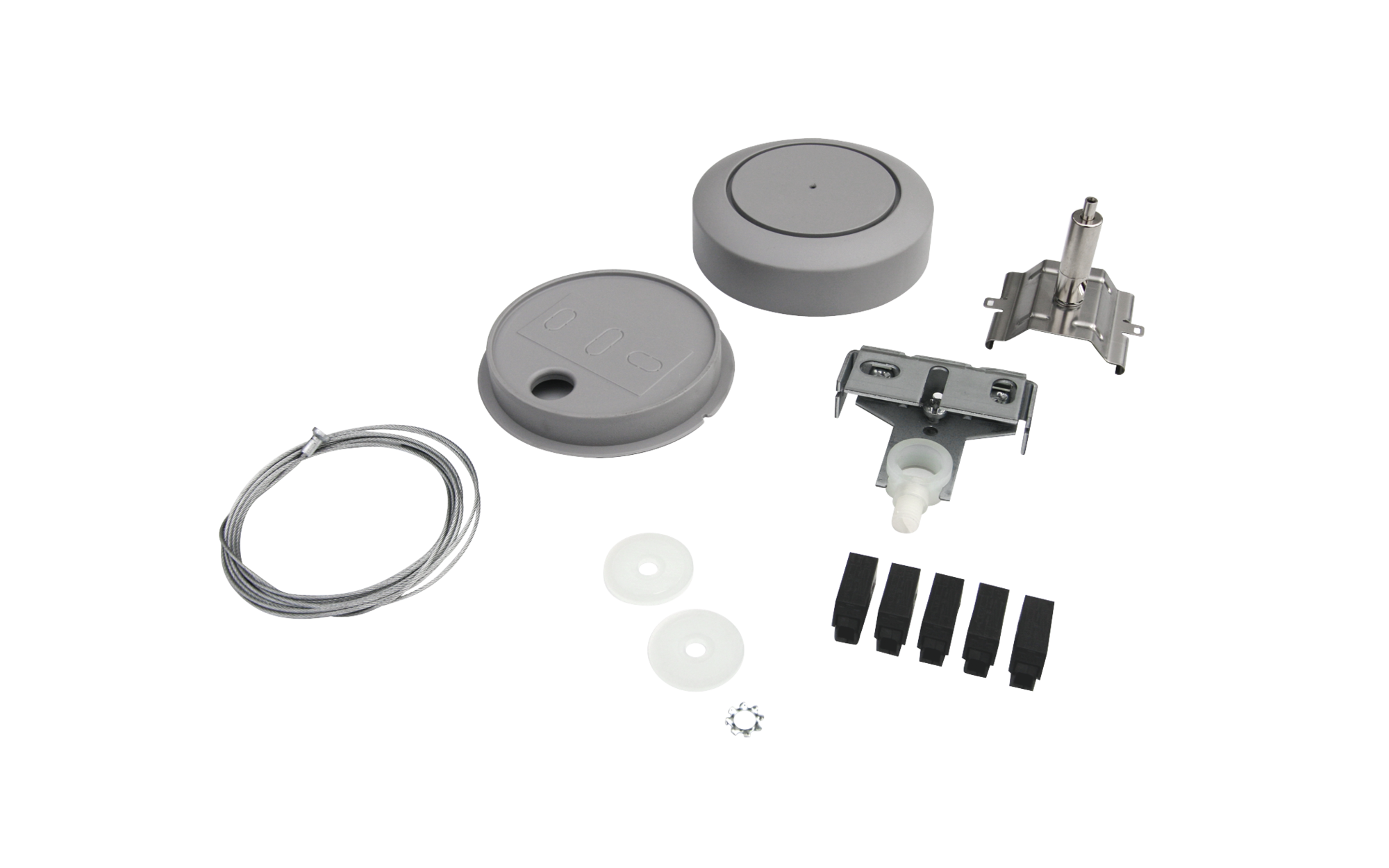 Modario, Seilabhängung, mit mit 5 Klemmen, 1polig, max. 2,5mm², Deckenbefestigungselement, aus Stahlblech, verzinkt, Baldachin, aus Kunststoff, Seil, aus Stahl, verzinkt, schienenseitige Befestigung, aus Federstahl V2A, Verpackungseinheit: 1 Stück