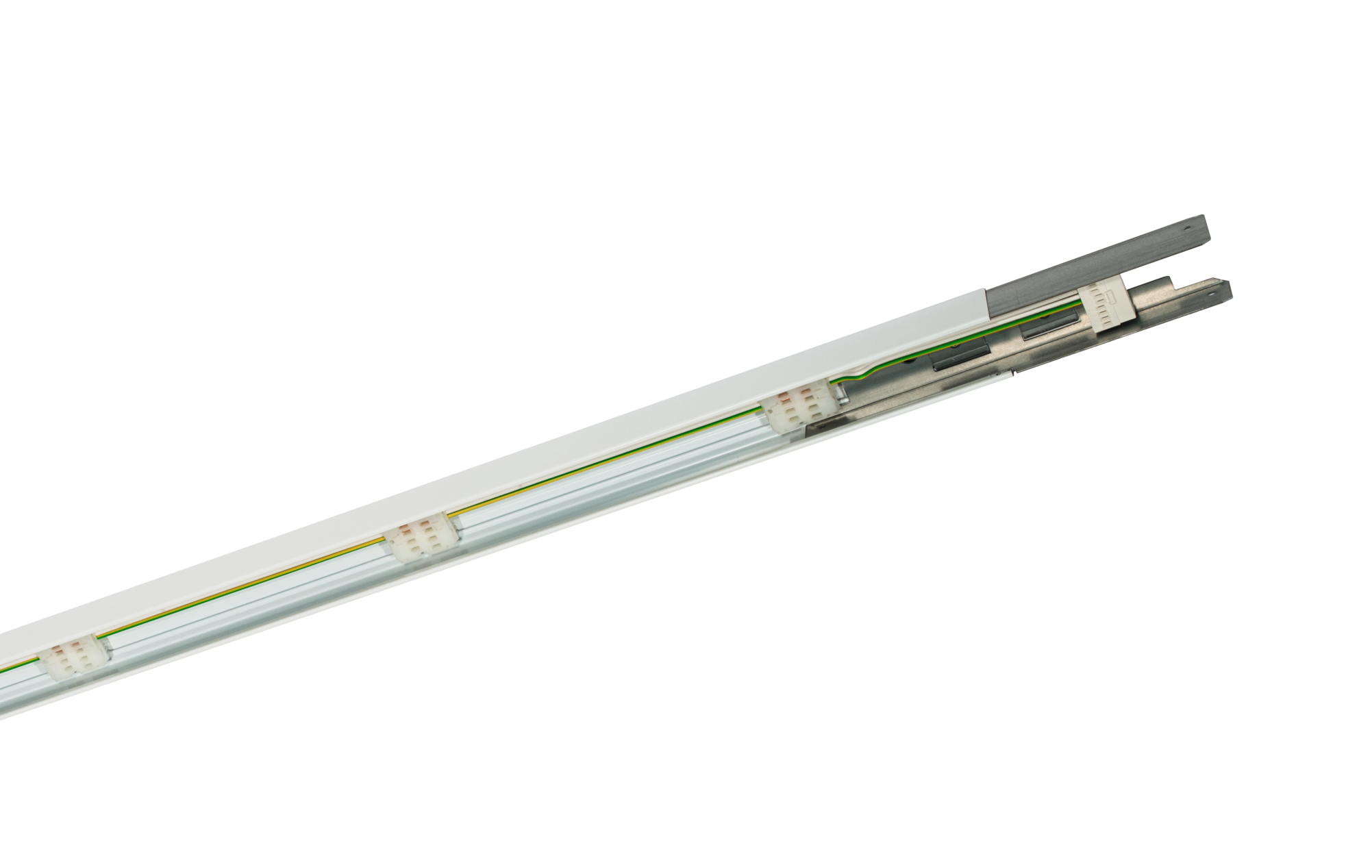 Modario IP64, Tragschiene, aus Stahlblech, verzinkt, lackiert, leuchtenweiß, 1längig, Länge: 1.495 mm, Breite: 58 mm, Höhe: 43mm, Durch­ver­drahtung: 5x 2,5mm², mit Klemme, 5polig, max. 2,5mm², Schutzart (gesamt): für Schutzart IP64, Schutzklasse (gesamt): SK I (Schutzerdung), Prüfzeichen: CE, ENEC, VDE, Norm: EN 60598, Verpackungs­einheit: 1 Stück