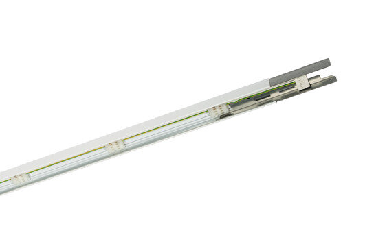 Modario IP64, Tragschiene, aus Stahlblech, verzinkt, lackiert, leuchtenweiß, 3längig, Länge: 4.485 mm, Breite: 58 mm, Höhe: 43mm, Durchverdrahtung: 5x 2,5mm², mit Klemme, 5polig, max. 2,5mm², Schutzart (gesamt): für Schutzart IP64, Schutzklasse (gesamt): SK I (Schutzerdung), Prüfzeichen: CE, ENEC, VDE, Norm: EN 60598, Verpackungseinheit: 1 Stück