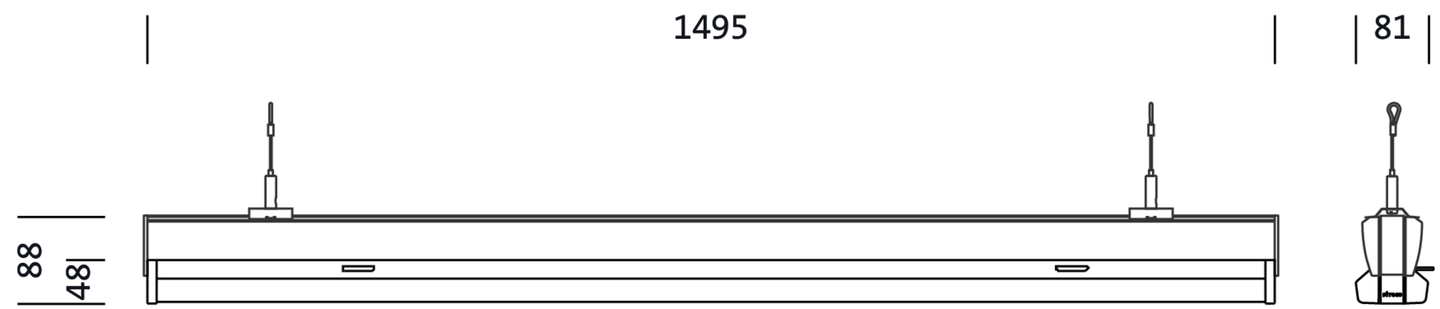 Modario PS, Leuchteneinsatz, aus Aluminium, eloxiert, Länge: 1.495mm, Breite: 80mm, Höhe: 88mm, 5x Systemmaß, Systemmaß: 299mm, LED Bemessungslichtstrom: 10.210lm, Lichtfarbe: 840, SDCM (Standard Deviation of Colour Matching)MacAdam ≤ 3 SDCM (initial), Vorschaltgerät: EIN/AUS, Vorschaltgerät: EVG, mit Stecker, 3polig, mit Phasenwahl, Netzanschluss: 230V, AC, 50/60Hz, Bemessungsleistung: 62W, Durchverdrahtung abgreifbar im Systemmaß, primäre lichttechn. Abdeckung: Abdeckung, aus PMMA, Lichtaustritt: direkt strahlend, primäre Lichtcharakteristik: symmetrisch, Schutzart (gesamt): IP20, Schutzart (LED-Raum): IP50, Schutzklasse (gesamt): SK I (Schutzerdung), Prüfzeichen: CE, Schlagfestigkeit: IK03, zul. Umgebungstemperatur für Innenräume: -30..+40°C, entspricht den Anforderungen von IFS (International Featured Standards) für Sicherheit und Qualität in der Lebensmittelindustrie, bei Deckenanbau Reduzierung der zulässigen maximalen Umgebungstemperatur um 5°C, Verpackungseinheit: 1 Stück
