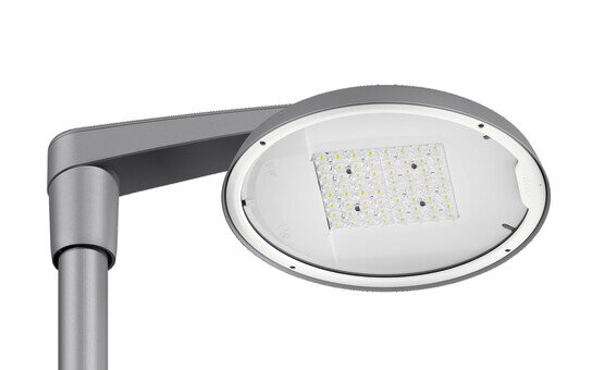 DL 50 iQ mini, Mastleuchte, primäre Lichtlenkung mit Linse, aus PMMA, primäre lichttechn. Abdeckung: Abdeckung, aus Einscheiben-Sicherheitsglas, klar, Lichtverteilung: S100003, Abstrahlwinkel primär: breit strahlend, Lichtaustritt: direkt strahlend, primäre Lichtcharakteristik: asymmetrisch, Montageart: Ansatz, Aufsatz, Leuchtmittel: LED, Bemessungswerte: 15.660lm | 101,7W | 154lm/W (Beginn Lebensdauer); Ende Lebensdauer: 15.660lm | 111,4W; bei 50% Lichtstrom: 7.830lm | 45,3W | 172,8lm/W, Farbtemperatur: 4000K, Farbwiedergabe: CRI > 70, Lichtfarbe: 740, Lichteinstellung 1 (weitere Lichteinstellungen möglich): 100% | 15.660lm | 101,7W | 154lm/W | 4.000K (Beginn Lebensdauer); Ende Lebensdauer: 111,4W, Vorschaltgerät: iQ Street-Remote, Steuerung: optimierte Konstantlichtstromsteuerung (CLO 2.0), Desk-Remote (drahtloses, spannungsfreies Auslesen und Einstellen der iQ-Features in der Werkstatt via anwendungsoptimierter NFC-Funktion/RFID-Funktion), Light-Fading, Smart-Wire, Night-Set, Lumen-Switch, Temp-Guard, Auto-Match, Street-Remote, Netzanschluss: 220..240V, AC, 50/60Hz, Stoßspannungsfestigkeit: Stoßspannungsfestigkeit: 10kV (Common Mode); 6kV (Differential Mode), Anschlussleitung: vormontiert, Leitungslänge: 10,5m, Leitungsausprägung: H07RN-F, 5x 1,5mm², Leuchtengehäuse, aus Aluminium-Druckguss, pulverbeschichtet, SITECO eisenglimmer (DB 702S), Neigung einstellbar: 0°, 5°, 10° (Aufsatz) | 0°, -5°, -10°, -15° (Ansatz), Mastaufsatzelement oder Mastansatzelement bitte separat bestellen, Durchmesser: 500mm, Höhe: 115mm, bei Mastaufsatz: für Zopfmaß d x l = 76 x 100mm; mit Reduzierstück (optionales Zubehör) 60 x 100mm | bei Mastansatz: für Zopfmaß d x l = 60 x 100mm; mit Reduzierstück (optionales Zubehör) 42 x 100mm, Schutzart (gesamt): IP66, Schutzklasse (gesamt): SK II (Schutzisoliert), Prüfzeichen: CE, ENEC, ENEC+, VDE, Schlagfestigkeit: IK08, zul. Betriebsumgebungstemperatur für Außenanwendungen: -25..+40°C, normgerechte Platz- und Straßenbeleuchtung, Verpackungseinheit: 1 Stück