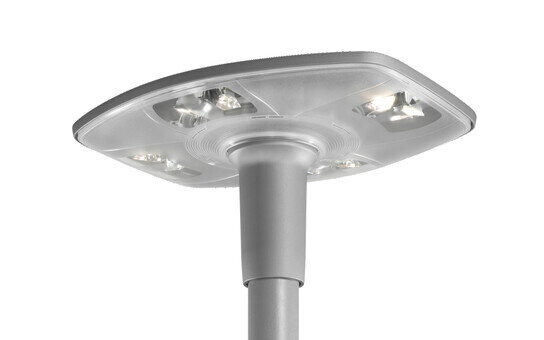 DL 30 LED, Mastleuchte, primäre Lichtlenkung mit 3-Zonen Facetten-Reflektor, aus Kunststoff, Silber beschichtet, hochglänzend, primäre lichttechn. Abdeckung: Abdeckung, aus PMMA, strukturiert, klar, Lichtverteilung: C120002, Abstrahlwinkel primär: breit strahlend, Lichtaustritt: direkt strahlend, primäre Lichtcharakteristik: symmetrisch, Montageart: Aufsatz, Leuchtmittel: LED, Bemessungswerte: 5.780lm | 52W | 111,2lm/W (Beginn Lebensdauer); Ende Lebensdauer: 5.780lm | 54W; bei 50% Lichtstrom: 2.889lm | 23,5W | 122,9lm/W, Farbtemperatur: 3000K, Farbwiedergabe: CRI > 80, Lichtfarbe: 830, Lichteinstellung 1 (weitere Lichteinstellungen möglich): 100% | 5.780lm | 52W | 111,2lm/W | 3.000K (Beginn Lebensdauer); Ende Lebensdauer: 54W, Vorschaltgerät: Plus, Steuerung: flexible Lichtstromparametrierung, zeitabhängige Lichtstromsteuerung, Konstantlichtstrom-Steuerung, digitale Kommunikationsschnittstelle, Leistungsreduzierung, Netzanschluss: 230..240V, AC, 50/60Hz, Stoßspannungsfestigkeit: 6kV 1,2/50µs, Leuchtengehäuse, aus Aluminium-Druckguss, pulverbeschichtet, SITECO eisenglimmer (DB 702S), Länge: 600mm, Breite: 510mm, Höhe: 290mm, für Zopfmaß: d x l = 76 x 100mm (Aufsatz) | mit Reduzierstück (optionales Zubehör) 60 x 100mm, Schutzart (gesamt): IP66, Schutzklasse (gesamt): SK II (Schutzisoliert), Prüfzeichen: CE, ENEC, VDE, Schlagfestigkeit: IK08, zul. Betriebsumgebungstemperatur: -25..+25°C, normgerechte Platz- und Straßenbeleuchtung, Verpackungseinheit: 1 Stück