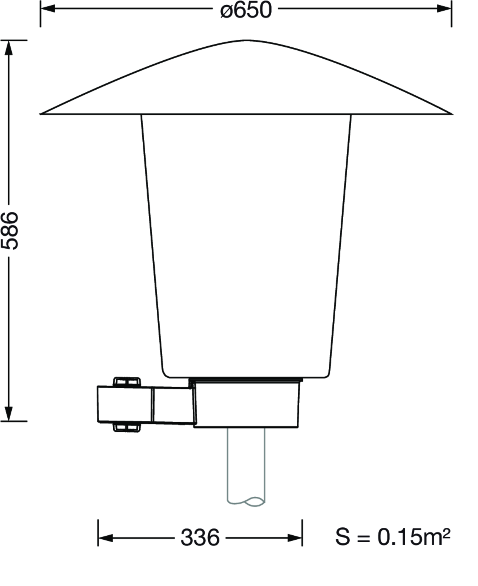 Mushroom Luminaire iQ, mast luminaire, Module 540 iQ-SR, primary light control with 3 zone facetted reflector, of plastic, silver coated, highly specular, structured, primary optical cover: cover, of PMMA, transparent, light distribution: ST1.2a, light emission: direct distribution, primary light characteristic: asymmetric, installation type: post-top, LED, High Power LED, rated luminous flux: 1.550lm, luminous efficacy: 145lm/W, light colour: 730, colour temperature: 3000K, control gear: iQ-Street Remote, D4i with power reduction, control: optimised constant luminous flux control (CLO 2.0), Desk-Remote (wireless, voltage-free reading and setting of iQ features in the workshop via application-optimized NFC function/RFID function), Light-Fading, Smart-Wire, Night-Set, Lumen-Switch, Temp-Guard, Auto-Match, Street-Remote, pre-setting: logarithmic dimming characteristic, with terminal, 6-pole, max. 2.5mm², mains connection: 230..240V, AC, 50/60Hz, connection cable pre-assembled, cable length: 5,5m, wiring characteristics: H07RN-F, start of lifetime: 11W, end of service life: 11W, reduction: 6W, luminaire housing, upper part, of glass-fibre reinforced polyester, coated, SITECO metallic grey (DB 702S), diameter: 650mm, height: 586mm, spigot size: d x l = 76 x 70mm (post-top) | with reducer (optional accessory) 60 x 70mm, mounting height: 3..5m, post-top mast mounting element, of diecast aluminium, coated, SITECO metallic grey (DB 702S), Module 540 iQ-SR, traffic white (RAL 9016), equipment: standard, Smart Interface below and above, protection rating (complete): IP65, insulation class (complete): insulation class II (safety insulation), certification: CE, ENEC, VDE, packaging unit: 1 piece