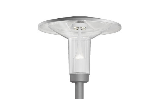 Laterne iQ, Mastleuchte, Modul 540 iQ-SR, primäre Lichtlenkung mit 3-Zonen Facetten-Reflektor, aus Kunststoff, Silber beschichtet, hochglänzend, strukturiert, primäre lichttechn. Abdeckung: Abdeckung, aus PMMA, klar, Lichtverteilung: C120006, Abstrahlwinkel primär: breit strahlend, Lichtaustritt: direkt strahlend, primäre Lichtcharakteristik: symmetrisch, Montageart: Aufsatz, Leuchtmittel: LED, Bemessungswerte: 2.970lm | 23,9W | 124,3lm/W (Beginn Lebensdauer); Ende Lebensdauer: 2.970lm | 25,5W; bei 50% Lichtstrom: 1.485lm | 11,5W | 129,1lm/W, Farbtemperatur: 2200K, Farbwiedergabe: CRI > 70, Lichtfarbe: 722, Lichteinstellung 1 (weitere Lichteinstellungen möglich): 100% | 2.970lm | 23,9W | 124,3lm/W | 2.200K (Beginn Lebensdauer); Ende Lebensdauer: 25,5W, Vorschaltgerät: iQ Street-Remote, Steuerung: Voreinstellung: Dimmkennlinie logarithmisch, Street-Remote, Auto-Match, Temp-Guard, Lumen-Switch, Night-Set, Smart-Wire, Light-Fading, Desk-Remote (drahtloses, spannungsfreies Auslesen und Einstellen der iQ-Features in der Werkstatt via anwendungsoptimierter NFC-Funktion/RFID-Funktion), optimierte Konstantlichtstromsteuerung (CLO 2.0), Netzanschluss: 220..240V, AC, 50/60Hz, Stoßspannungsfestigkeit: Stoßspannungsfestigkeit: 10kV (Common Mode); 6kV (Differential Mode), Elektrischer Anschluss: Klemme, 6polig, max. 2,5mm², eindrähtig, feindrähtig, Leuchtengehäuse-Oberteil, aus Polyester, glasfaserverstärkt, lackiert, SITECO eisenglimmer (DB 702S), Durchmesser: 750mm, Höhe: 583mm, für Zopfmaß: d x l = 76 x 70mm (Aufsatz) | mit Reduzierstück (optionales Zubehör) 60 x 70mm, Mastaufsatzelement, aus Aluminium-Druckguss, lackiert, SITECO eisenglimmer (DB 702S), Modul 540 iQ-SR, verkehrsweiß matt (RAL 9016), Ausstattung: Standard, Schutzart (gesamt): IP65, Schutzklasse (gesamt): SK II (Schutzisoliert), Prüfzeichen: CE, ENEC, VDE, Verpackungseinheit: 1 Stück