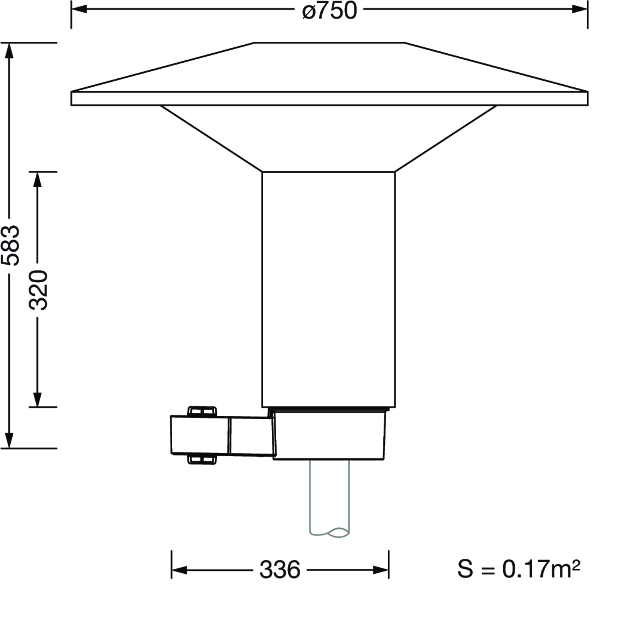 Mastzopf für Zopfmaß: d x l = 76 x 70mm (Aufsatz) | mit Reduzierstück (optionales Zubehör) 60 x 70mm