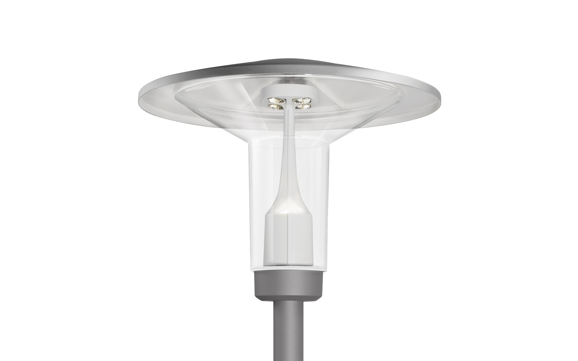 Laterne iQ, Mastleuchte, Modul 540 iQ-SR, primäre Lichtlenkung mit 3-Zonen Facetten-Reflektor, aus Kunststoff, Silber beschichtet, hochglänzend, strukturiert, primäre lichttechn. Abdeckung: Abdeckung, aus PMMA, klar, Lichtverteilung: P100008, Lichtaustritt: direkt strahlend, primäre Lichtcharakteristik: asymmetrisch, Montageart: Aufsatz, Leuchtmittel: LED, Bemessungswerte: 1.510lm | 10,5W | 143,8lm/W (Beginn Lebensdauer); Ende Lebensdauer: 1.510lm | 10,8W; bei 50% Lichtstrom: 755lm | 5,4W | 139,8lm/W, Farbtemperatur: 3000K, Farbwiedergabe: CRI > 70, Lichtfarbe: 730, Lichteinstellung 1 (weitere Lichteinstellungen möglich): 100% | 1.510lm | 10,5W | 143,8lm/W | 3.000K (Beginn Lebensdauer); Ende Lebensdauer: 10,8W, Vorschaltgerät: iQ Street-Remote, Steuerung: Street-Remote, Auto-Match, Temp-Guard, Lumen-Switch, Night-Set, Smart-Wire, Light-Fading, Desk-Remote (drahtloses, spannungsfreies Auslesen und Einstellen der iQ-Features in der Werkstatt via anwendungsoptimierter NFC-Funktion/RFID-Funktion), optimierte Konstantlichtstromsteuerung (CLO 2.0), Voreinstellung: Dimmkennlinie logarithmisch, Netzanschluss: 220..240V, AC, 50/60Hz, Stoßspannungsfestigkeit: Stoßspannungsfestigkeit: 10kV (Common Mode); 6kV (Differential Mode), Elektrischer Anschluss: Klemme, 6polig, max. 2,5mm², eindrähtig, feindrähtig, Anschlussleitung: vormontiert, Leitungslänge: 5,5m, Leitungsausprägung: H07RN-F, 5x 1,5mm², Leuchtengehäuse-Oberteil, aus Polyester, glasfaserverstärkt, lackiert, SITECO eisenglimmer (DB 702S), Durchmesser: 750mm, Höhe: 583mm, für Zopfmaß: d x l = 76 x 70mm (Aufsatz) | mit Reduzierstück (optionales Zubehör) 60 x 70mm, Mastaufsatzelement, aus Aluminium-Druckguss, lackiert, SITECO eisenglimmer (DB 702S), Modul 540 iQ-SR, verkehrsweiß matt (RAL 9016), Ausstattung: Standard, Schutzart (gesamt): IP65, Schutzklasse (gesamt): SK II (Schutzisoliert), Prüfzeichen: CE, ENEC, VDE, Verpackungseinheit: 1 Stück