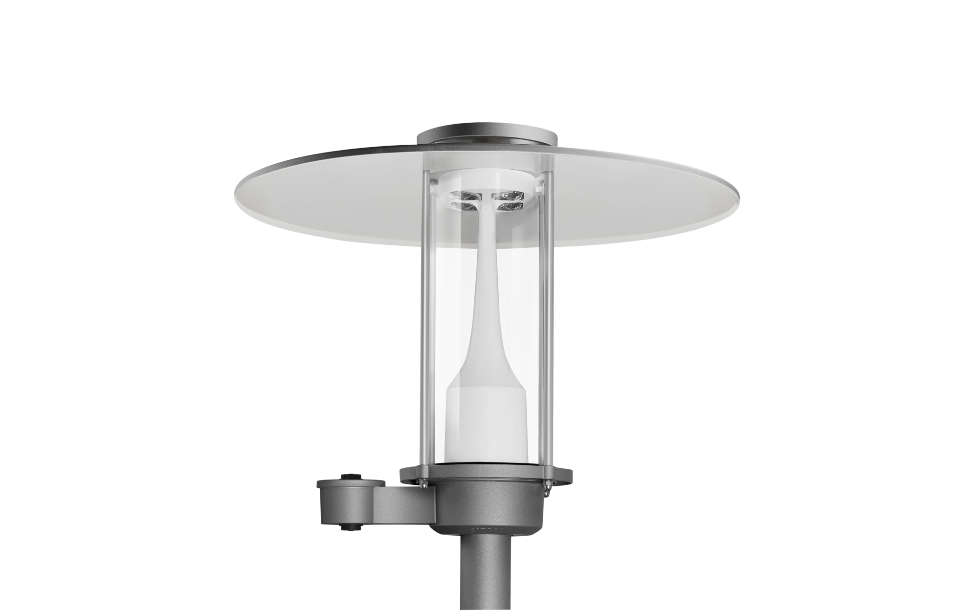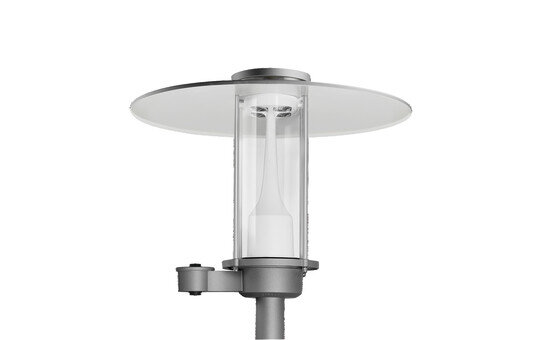 City-Light Plus iQ, Mastleuchte, Modul 540 iQ-SR, primäre Lichtlenkung mit 3-Zonen Facetten-Reflektor, aus Kunststoff, Silber beschichtet, hochglänzend, strukturiert, primäre lichttechn. Abdeckung: Abdeckung, aus PMMA, klar, Licht­verteilung: S120011, Lichtaustritt: direkt strahlend, primäre Licht­charakteristik: asymmetrisch, Montageart: Aufsatz, Leuchtmittel: LED, Bemessungswerte: 1.460lm | 10,7W | 136,4lm/W (Beginn Lebensdauer); Ende Lebensdauer: 1.460lm | 11,1W; bei 50% Lichtstrom: 730lm | 5,6W | 130,4lm/W, Farb­temperatur: 3000K, Farb­wiedergabe: CRI > 70, Lichtfarbe: 730, Lichteinstellung 1 (weitere Lichteinstellungen möglich): 100% | 1.460lm | 10,7W | 136,4lm/W | 3.000K (Beginn Lebensdauer); Ende Lebensdauer: 11,1W, Vorschaltgerät: iQ-Street Remote, D4i, Steuerung: optimierte Konstant­licht­strom­steuerung (CLO 2.0), Desk-Remote (drahtloses, spannungsfreies Auslesen und Einstellen der iQ-Features in der Werkstatt via anwendungsoptimierter NFC-Funktion/RFID-Funktion), Light-Fading, Smart-Wire, Night-Set, Lumen-Switch, Temp-Guard, Auto-Match, Street-Remote, Voreinstellung: Dimmkennlinie logarithmisch, Netz­anschluss: 220..240V, AC, 50/60Hz, Stoßspannungsfestigkeit: Stoßspannungsfestigkeit: 10kV (Common Mode); 6kV (Differential Mode), Elektrischer Anschluss: Klemme, 6polig, max. 2,5mm², eindrähtig, feindrähtig, Anschluss­leitung: vormontiert, Leitungslänge: 5,5m, Leitungsausprägung: H07RN-F, 5G 1,5mm², Belegung: L/N/E/LST, Leuchten­gehäuse-Oberteil, aus Polyester, glas­faser­verstärkt, lackiert, SITECO eisenglimmer (DB 702S), Durchmesser: 750mm, Höhe: 590mm, für Zopfmaß: d x l = 76 x 70mm (Aufsatz) | mit Reduzierstück (optionales Zubehör) 60 x 70mm, Mastaufsatzelement, aus Aluminium-Druckguss, lackiert, SITECO eisenglimmer (DB 702S), Modul 540 iQ-SR, verkehrsweiß (RAL 9016), Smart Interface oben: Zhaga, Ausstattung: Standard, Schutzart (gesamt): IP65, Schutzklasse (gesamt): SK II (Schutzisoliert), Prüfzeichen: CE, ENEC, VDE, Verpackungs­einheit: 1 Stück