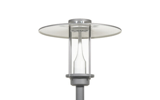 City-Light Plus iQ, Mastleuchte, Modul 540 iQ-SR, primäre Lichtlenkung mit 3-Zonen Facetten-Reflektor, aus Kunststoff, Silber beschichtet, hochglänzend, strukturiert, primäre lichttechn. Abdeckung: Abdeckung, aus PMMA, klar, Lichtverteilung: P100009, Abstrahlwinkel primär: extrem breit strahlend, Lichtaustritt: direkt strahlend, primäre Lichtcharakteristik: asymmetrisch, Montageart: Aufsatz, Leuchtmittel: LED, Bemessungswerte: 4.480lm | 33,6W | 133,3lm/W (Beginn Lebensdauer); Ende Lebensdauer: 4.480lm | 35,9W; bei 50% Lichtstrom: 2.240lm | 15,2W | 147,4lm/W, Farbtemperatur: 3000K, Farbwiedergabe: CRI > 70, Lichtfarbe: 730, Lichteinstellung 1 (weitere Lichteinstellungen möglich): 100% | 4.480lm | 33,6W | 133,3lm/W | 3.000K (Beginn Lebensdauer); Ende Lebensdauer: 35,9W, Vorschaltgerät: iQ Street-Remote, Steuerung: Voreinstellung: Dimmkennlinie logarithmisch, Street-Remote, Auto-Match, Temp-Guard, Lumen-Switch, Night-Set, Smart-Wire, Light-Fading, Desk-Remote (drahtloses, spannungsfreies Auslesen und Einstellen der iQ-Features in der Werkstatt via anwendungsoptimierter NFC-Funktion/RFID-Funktion), optimierte Konstantlichtstromsteuerung (CLO 2.0), Netzanschluss: 220..240V, AC, 50/60Hz, Stoßspannungsfestigkeit: Stoßspannungsfestigkeit: 10kV (Common Mode); 6kV (Differential Mode), Elektrischer Anschluss: Klemme, 6polig, max. 2,5mm², eindrähtig, feindrähtig, Leuchtengehäuse-Oberteil, aus Polyester, glasfaserverstärkt, lackiert, SITECO eisenglimmer (DB 702S), Durchmesser: 750mm, Höhe: 590mm, für Zopfmaß: d x l = 76 x 70mm (Aufsatz) | mit Reduzierstück (optionales Zubehör) 60 x 70mm, Mastaufsatzelement, aus Aluminium-Druckguss, lackiert, SITECO eisenglimmer (DB 702S), Modul 540 iQ-SR, verkehrsweiß matt (RAL 9016), Ausstattung: Power, Schutzart (gesamt): IP65, Schutzklasse (gesamt): SK II (Schutzisoliert), Prüfzeichen: CE, ENEC, VDE, Verpackungseinheit: 1 Stück