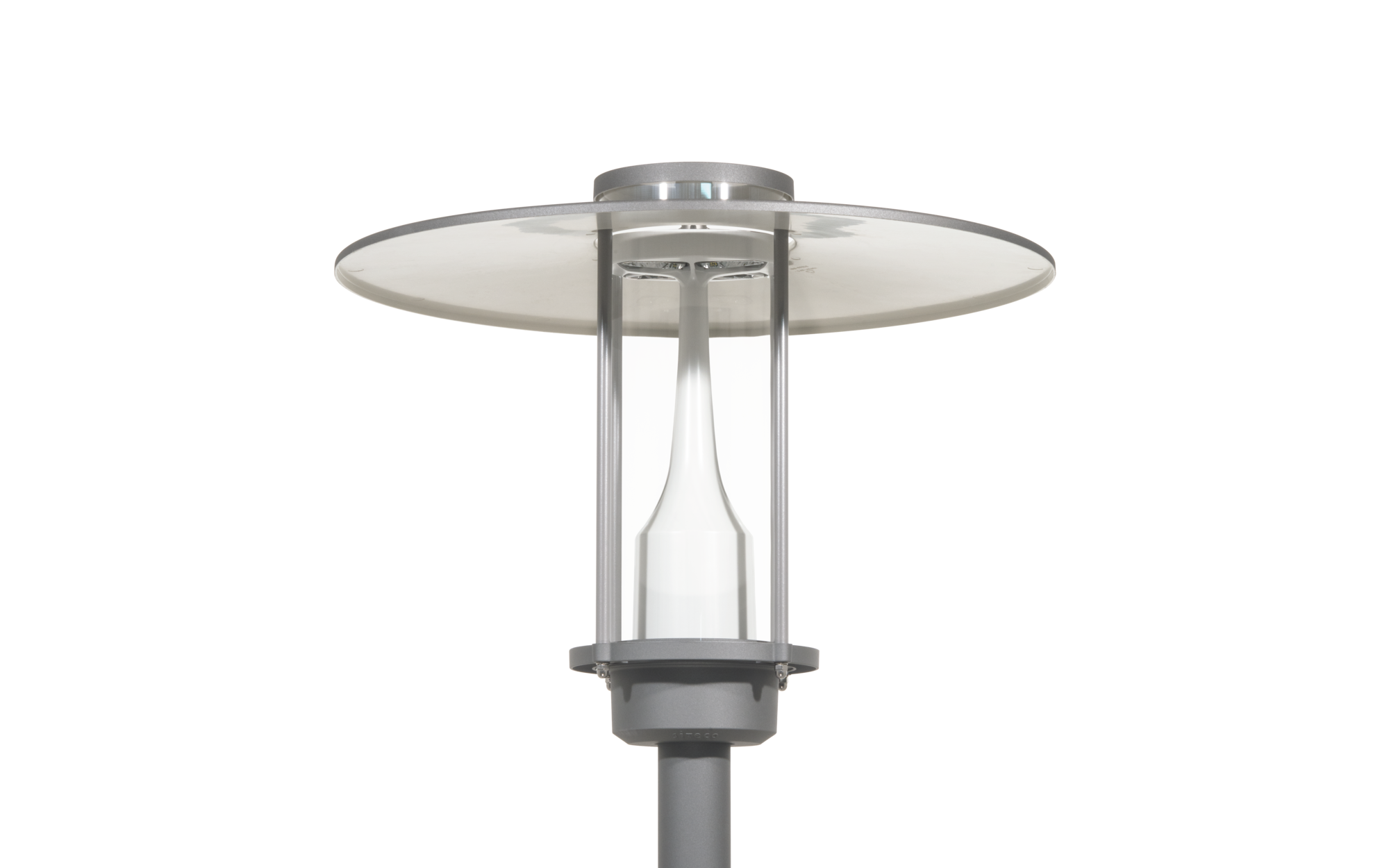 City-Light Plus iQ, Mastleuchte, Modul 540 iQ-SR, primäre Lichtlenkung mit 3-Zonen Facetten-Reflektor, aus Kunststoff, Silber beschichtet, hochglänzend, strukturiert, primäre lichttechn. Abdeckung: Abdeckung, aus PMMA, klar, Lichtverteilung: S120011, Lichtaustritt: direkt strahlend, primäre Lichtcharakteristik: asymmetrisch, Montageart: Aufsatz, Leuchtmittel: LED, Bemessungswerte: 4.040lm | 33,6W | 120,2lm/W (Beginn Lebensdauer); Ende Lebensdauer: 4.040lm | 35,9W; bei 50% Lichtstrom: 2.020lm | 15,2W | 132,9lm/W, Farbtemperatur: 2700K, Farbwiedergabe: CRI > 70, Lichtfarbe: 727, Lichteinstellung 1 (weitere Lichteinstellungen möglich): 100% | 4.040lm | 33,6W | 120,2lm/W | 2.700K (Beginn Lebensdauer); Ende Lebensdauer: 35,9W, Vorschaltgerät: iQ Street-Remote, Steuerung: Voreinstellung: Dimmkennlinie logarithmisch, Street-Remote, Auto-Match, Temp-Guard, Lumen-Switch, Night-Set, Smart-Wire, Light-Fading, Desk-Remote (drahtloses, spannungsfreies Auslesen und Einstellen der iQ-Features in der Werkstatt via anwendungsoptimierter NFC-Funktion/RFID-Funktion), optimierte Konstantlichtstromsteuerung (CLO 2.0), Netzanschluss: 220..240V, AC, 50/60Hz, Stoßspannungsfestigkeit: Stoßspannungsfestigkeit: 10kV (Common Mode); 6kV (Differential Mode), Elektrischer Anschluss: Klemme, 6polig, max. 2,5mm², eindrähtig, feindrähtig, Leuchtengehäuse-Oberteil, aus Polyester, glasfaserverstärkt, lackiert, SITECO eisenglimmer (DB 702S), Durchmesser: 750mm, Höhe: 590mm, für Zopfmaß: d x l = 76 x 70mm (Aufsatz) | mit Reduzierstück (optionales Zubehör) 60 x 70mm, Mastaufsatzelement, aus Aluminium-Druckguss, lackiert, SITECO eisenglimmer (DB 702S), Modul 540 iQ-SR, verkehrsweiß matt (RAL 9016), Ausstattung: Power, Schutzart (gesamt): IP65, Schutzklasse (gesamt): SK II (Schutzisoliert), Prüfzeichen: CE, ENEC, VDE, Verpackungseinheit: 1 Stück