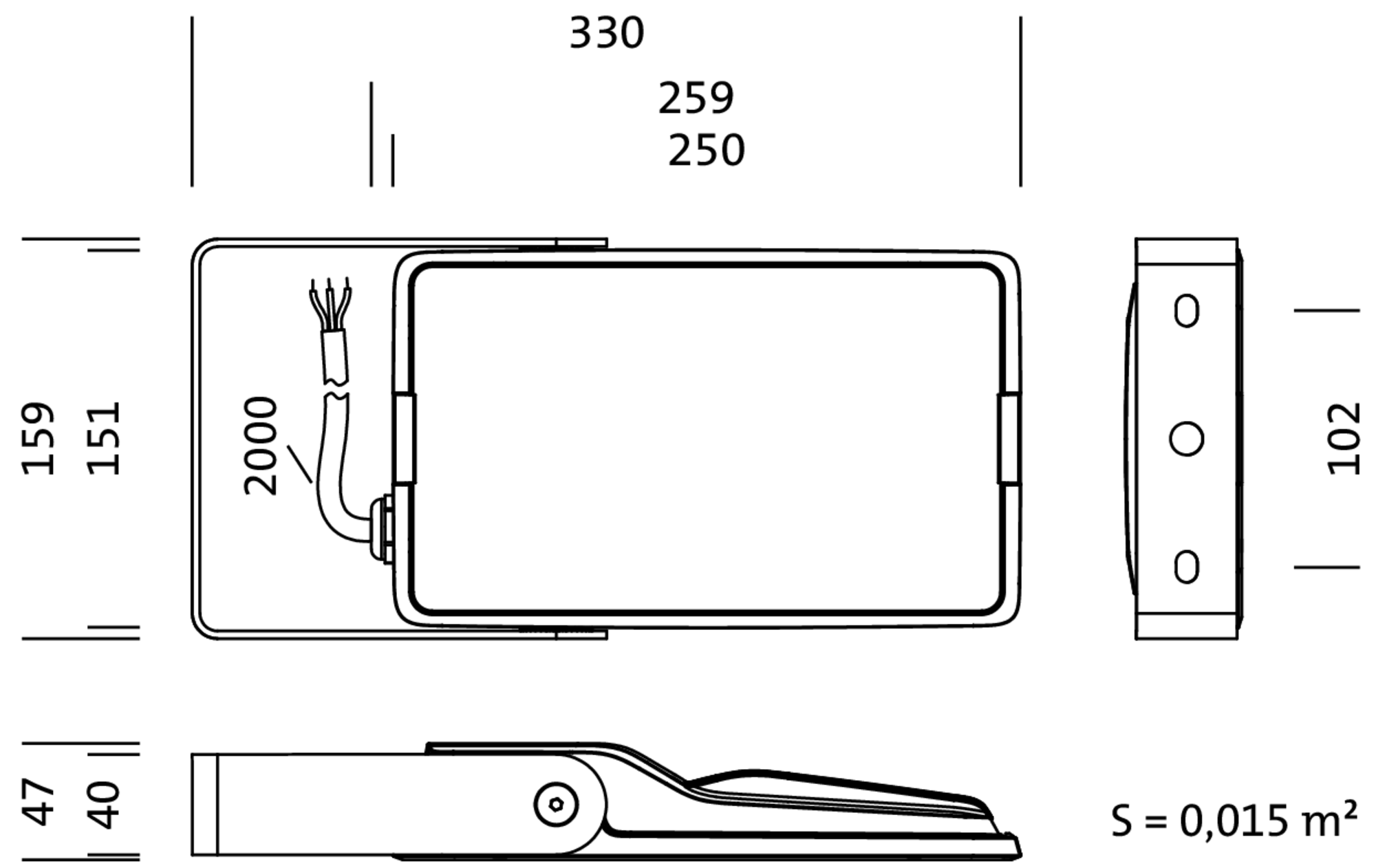 SiCompact 31 micro, proiettore, conduzione primaria della luce con lente, in materiale plastico, in vetro di sicurezza monolastra, trasparente, distribuzione luminosa: PL32, uscita luce: diretta distribuzione, distribuzione luminosa primaria: asimmetrica, tipo di montaggio: a plafone, LED, High Power LED, flusso luminoso di misurazione: 4.400lm, efficienza luminosa: 152lm/W, colore della luce: 740, temperatura di colore: 4000K, alimentatore: ON/OFF, con cavo, 3x 1,5mm², allacciamento alla rete: 220..240V, AC, 50/60Hz, cavo di collegamento preassemblato, lunghezza cavo: 2m, potenza di misurazione: 29W, in alluminio pressofusione, brillante, alluminio brillante (RAL 9006), lunghezza: 330mm, larghezza: 159mm, altezza: 47mm, staffa, in lamiera di acciaio, verniciato, alluminio brillante (RAL 9006), ON/OFF, grado di protezione (totale): IP66, classe di isolamento (totale): classe isolamento I (messa a terra), marchi di qualità: CE, ENEC, resistenza agli urti: IK08, temperatura ambiente operativa ammessa: -40..+45°C, unità d’imballo: 1 pezzo