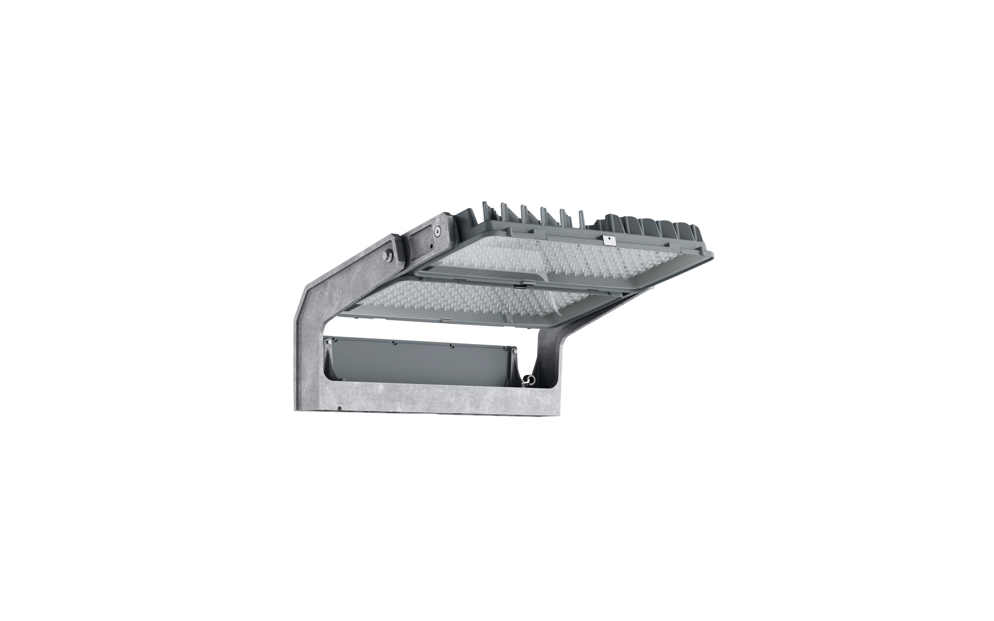 Floodlight FL 11 maxi Fluter; Lichtlenkung mit Linse aus PMMA; Abdeckscheibe aus Einscheiben-Sicherheitsglas, klar; Lichtverteilung: A330001, asymmetrisch direkt strahlend, Bemessungswerte: 166.320lm | 1.272,3W | 130,7lm/W, Farbtemperatur: 4000K, Farbwiedergabe: CRI > 70, Lichtfarbe: 740, Lichteinstellung 1 (weitere Lichteinstellungen möglich): 100% | 166.320lm | 1.272,3W | 130,7lm/W | 4.000K Voreinstellung: Dimmkennlinie linear; Helligkeitssteuerung: DALI 2; Netzanschluss: 220..240V/380..400V AC, 50/60Hz, Stoßspannungsfestigkeit: Line to Ground: 10kV, Elektrischer Anschluss: Klemme, 5polig, max. 2,5mm², eindrähtig, feindrähtig, EVG einzeln tauschbar, LED-Einheit ohne ESD-Umgebung tauschbar, staubdichte LED-Einheit, LED-Einheit austauschbar, LED-Einheit ohne ESD-Umgebung tauschbar am Mast, Dimmbereich 10..100%; Fluter mit 2x LED-Einheit aus Aluminium-Druckguss, natur; Länge: 713mm / Breite: 651mm / Höhe: 338mm; Tragbügel, aus Aluminium-Druckguss, unbehandelt, natur, Ausstattung: Power, Schutzart (gesamt): IP66; Schutzklasse (gesamt): SK I (Schutzerdung); Prüfzeichen: CE, ENEC, VDE; Ballwurfsicherheit: ballwurfsicher, nur für Aussenanlagen in den ausgewiesenen Einsatzorten, zul. Betriebsumgebungstemperatur: -40..+55°C, zul. Lagertemperatur: -40..+85°CVerpackungseinheit: 1 Stück