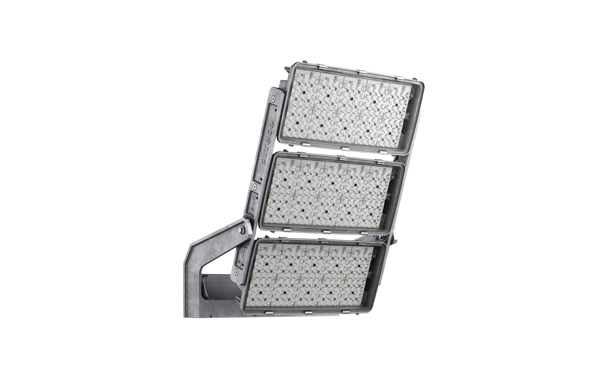 Floodlight FL 11 maxi pro Fluter; Lichtlenkung mit Linse aus PMMA; Abdeckscheibe aus Einscheiben-Sicherheitsglas, klar; Lichtverteilung: RS12, rotations-symmetrisch direkt strahlend, LED; Farbtemperatur: 5700K, Bemessungslichtstrom: 110.330lm, Farbwiedergabe: CRI > 90, Lichtfarbe: 957; Lichtausbeute: 108lm/W; Helligkeitssteuerung: DALI 2 (1 DALI-Adresse); mit Klemme, 5polig, max. 2,5mm², Netzanschluss: 220..240V/380..400V AC, 50/60Hz, Stoßspannungsfestigkeit: Line to Ground: 10kV, LED-Einheit austauschbar, LED Einheit ohne ESD-Umgebung tauschbar am Mast, staubdichtes LED-Modul, LED Einheit ohne ESD-Umgebung tauschbar, EVG einzeln tauschbar, Dimmbereich 10..100%; 1021W Fluter mit 3x LED-Einheit aus Aluminium-Druckguss, lackiert grau; Länge: 1.003mm / Breite: 651mm / Höhe: 338mm; Tragbügel, aus Aluminium-Druckguss, unbehandelt, natur, Ausstattung: Longlife, Schutzart (gesamt): IP66; Schutzklasse (gesamt): SK I (Schutzerdung); Prüfzeichen: CE, ENEC, VDE; Ballwurfsicherheit: ballwurfsicher, Schlagfestigkeit: IK07; nur für Aussenanlagen, Bemessungsumgebungstemperatur 10°C, zul. Betriebsumgebungstemperatur: -40..+30°C, zul. Lagertemperatur: -40..+85°CVerpackungseinheit: 1 Stück