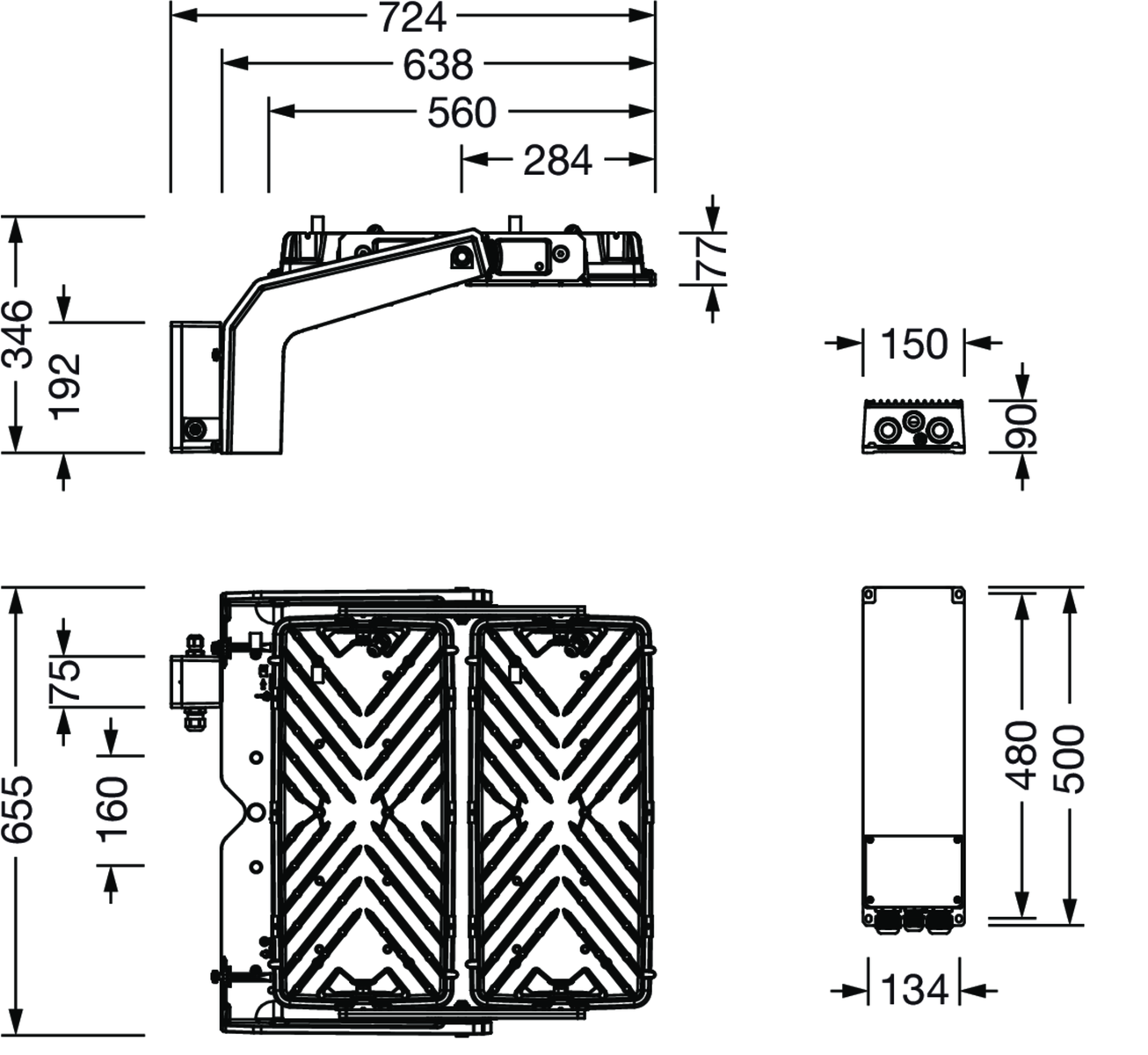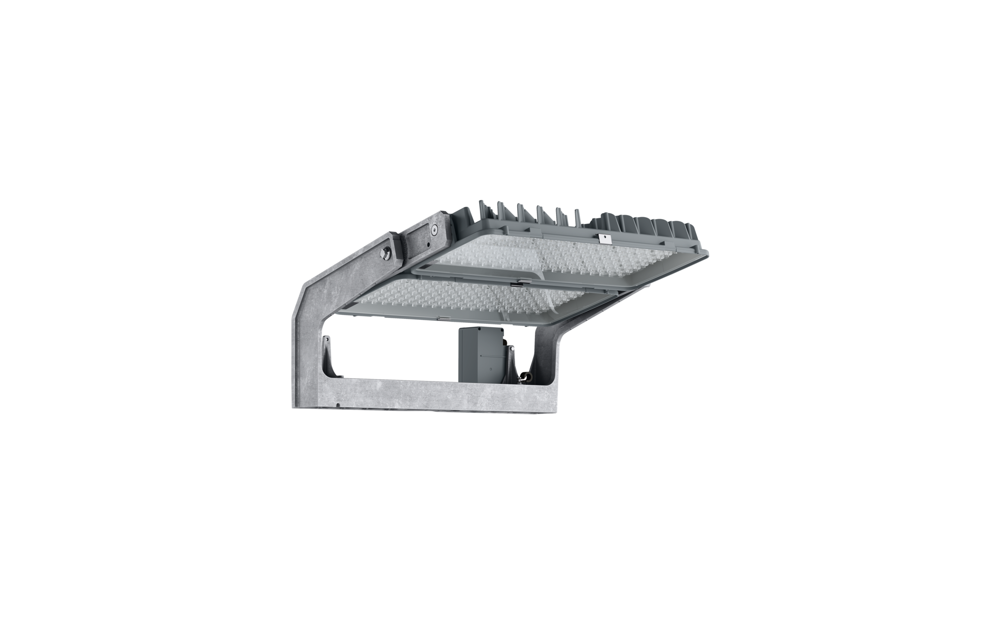 Floodlight FL 11 maxi Remote Fluter; Lichtlenkung mit Linse aus PMMA; Abdeckscheibe aus Einscheiben-Sicherheitsglas, klar; Lichtverteilung: PL33TBLC, asymmetrisch direkt strahlend, LED; Farbtemperatur: 5700K, Bemessungslichtstrom: 112.460lm, Farbwiedergabe: CRI > 70, Lichtfarbe: 757; Lichtausbeute: 107lm/W; Voreinstellung: Dimmkennlinie linear; Helligkeitssteuerung: DALI 2; mit Klemme, 8polig, max. 2,5mm², Netzanschluss: 220..240V/380..400V AC, 50/60Hz, Stoßspannungsfestigkeit: Line to Ground: 10kV, LED Lebensdauer bis zu 100.000h L90. Typische Betriebsdauer: 1000h pro Jahr., EVG einzeln tauschbar, LED Einheit ohne ESD-Umgebung tauschbar, staubdichtes LED-Modul, Dimmbereich 10..100%; 1055W Fluter mit 2x LED-Einheit aus Aluminium-Druckguss, natur; Länge: 713mm / Breite: 651mm / Höhe: 338mm; Tragbügel, aus Aluminium-Druckguss, unbehandelt, natur, Ausstattung: Power, Schutzart (gesamt): IP66; Schutzklasse (gesamt): SK I (Schutzerdung); Prüfzeichen: CE, ENEC, VDE; Ballwurfsicherheit: ballwurfsicher, nur für Aussenanlagen in den ausgewiesenen Einsatzorten, zul. Betriebsumgebungstemperatur: -45..+55°C, zul. Lagertemperatur: -40..+85°CVerpackungseinheit: 1 Stück