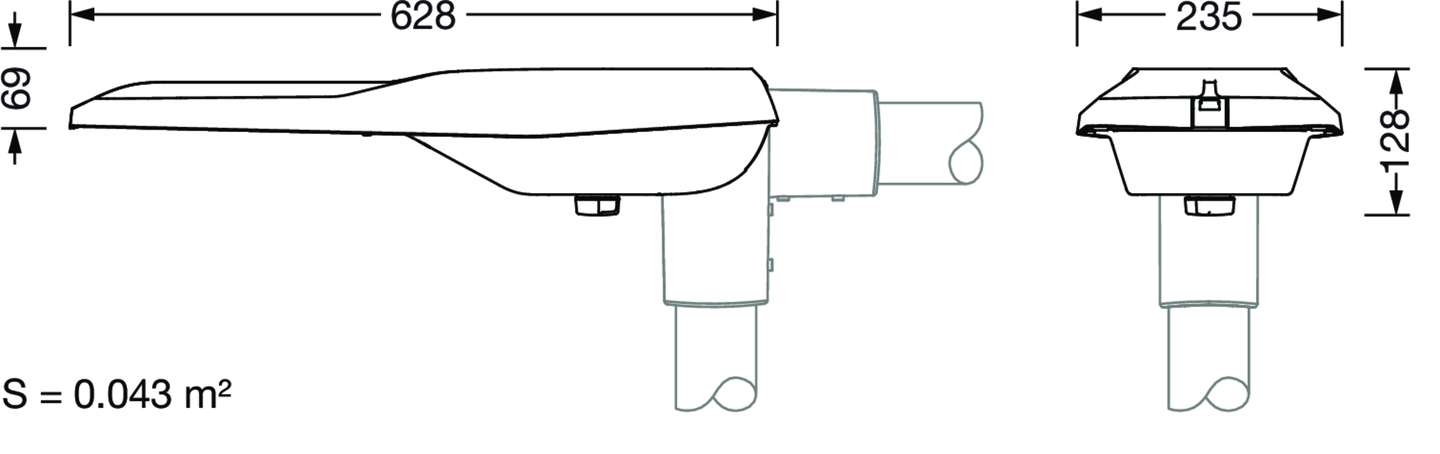 Streetlight SL 21 mini, Mastleuchte, primäre Lichtlenkung mit Linse, aus PMMA, primäre lichttechn. Abdeckung: Abdeckung, aus Einscheiben-Sicherheitsglas, klar, Lichtverteilung: P08B001, Abstrahlwinkel primär: breit strahlend, Lichtaustritt: direkt strahlend, primäre Lichtcharakteristik: asymmetrisch, Montageart: Aufsatz, Ansatz, Leuchtmittel: LED, Bemessungswerte: 7.850lm | 66W | 118,9lm/W (Beginn Lebensdauer); Ende Lebensdauer: 7.850lm | 68,9W; bei 50% Lichtstrom: 3.925lm | 29,8W | 131,7lm/W, Farbtemperatur: 3000K, Farbwiedergabe: CRI > 70, Lichtfarbe: 730, Lichteinstellung 1 (weitere Lichteinstellungen möglich): 100% | 7.850lm | 66W | 118,9lm/W | 3.000K (Beginn Lebensdauer); Ende Lebensdauer: 68,9W, Vorschaltgerät: D4i, Steuerung: Voreinstellung: Dimmkennlinie logarithmisch, flexible Lichtstromparametrierung, zeitabhängige Lichtstromsteuerung, Konstantlichtstrom-Steuerung, Überhitzungsschutz, Netzanschluss: 220..240V, AC, 50/60Hz, Stoßspannungsfestigkeit: Stoßspannungsfestigkeit: 10kV (Common Mode); 6kV (Differential Mode), Leuchtengehäuse, aus Aluminium-Druckguss, pulverbeschichtet, SITECO eisenglimmer (DB 702S), Korrosivitätskategorie C5 high gemäß DIN EN ISO 12944, mehrstufiges Dichtungssystem, Dichtung zerstörungsfrei tauschbar, Neigung einstellbar: 0°, 5°, 10°, 15°, Mastflansch bitte separat bestellen, Länge: 628mm, Breite: 235mm, Höhe: 110mm, Mastflansch für Zopfmaß: 42mm (Ansatz): 5XC10008XM4, 60/48mm (Ansatz/Aufsatz): 5XC10108XM2, 76/60mm (Ansatz/Aufsatz): 5XC10108XM1, Smart Interface unten: Zhaga, Schutzart (gesamt): IP66, Schutzklasse (gesamt): SK II (Schutzisoliert), Prüfzeichen: CE, ENEC, ENEC+, VDE, Schlagfestigkeit: IK10, zul. Betriebsumgebungstemperatur für Außenanwendungen: -40..+50°C, normgerechte Platz- und Straßenbeleuchtung, Verpackungseinheit: 1 Stück