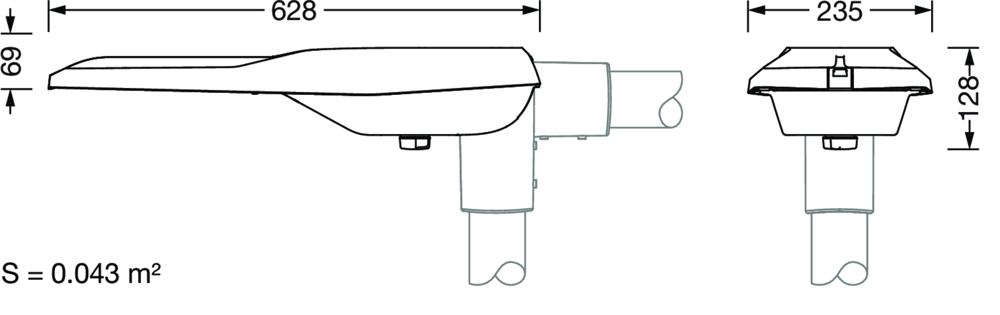 Streetlight SL 21 iQ mini, Mastleuchte, primäre Lichtlenkung mit Linse, aus PMMA, primäre lichttechn. Abdeckung: Abdeckung, aus Einscheiben-Sicherheitsglas, klar, Lichtverteilung: P080001, Abstrahlwinkel primär: breit strahlend, Lichtaustritt: direkt strahlend, primäre Lichtcharakteristik: asymmetrisch, Montageart: Aufsatz, Ansatz, Leuchtmittel: LED, Bemessungswerte: 6.040lm | 39,8W | 151,8lm/W (Beginn Lebensdauer); Ende Lebensdauer: 6.040lm | 41,2W; bei 50% Lichtstrom: 3.020lm | 18W | 167,8lm/W, Farbtemperatur: 3000K, Farbwiedergabe: CRI > 70, Lichtfarbe: 730, Lichteinstellung 1 (weitere Lichteinstellungen möglich): 100% | 6.040lm | 39,8W | 151,8lm/W | 3.000K (Beginn Lebensdauer); Ende Lebensdauer: 41,2W, Vorschaltgerät: iQ-Street Remote, D4i mit Leistungsreduzierung, Steuerung: Voreinstellung: Dimmkennlinie logarithmisch, Street-Remote, Auto-Match, Temp-Guard, Lumen-Switch, Night-Set, Smart-Wire, Light-Fading, Desk-Remote (drahtloses, spannungsfreies Auslesen und Einstellen der iQ-Features in der Werkstatt via anwendungsoptimierter NFC-Funktion/RFID-Funktion), optimierte Konstantlichtstromsteuerung (CLO 2.0), Netzanschluss: 220..240V, AC, 50/60Hz, Stoßspannungsfestigkeit: Stoßspannungsfestigkeit: 10kV (Common Mode); 6kV (Differential Mode), Leuchtengehäuse, aus Aluminium-Druckguss, pulverbeschichtet, SITECO eisenglimmer (DB 702S), Korrosivitätskategorie C5 high gemäß DIN EN ISO 12944, Mastflansch bitte separat bestellen, Neigung einstellbar: 0°, 5°, 10°, 15°, Dichtung zerstörungsfrei tauschbar, mehrstufiges Dichtungssystem, Länge: 628mm, Breite: 235mm, Höhe: 110mm, Mastflansch für Zopfmaß: 42mm (Ansatz): 5XC10008XM4, 60/48mm (Ansatz/Aufsatz): 5XC10108XM2, 76/60mm (Ansatz/Aufsatz): 5XC10108XM1, Smart Interface unten: Zhaga, Schutzart (gesamt): IP66, Schutzklasse (gesamt): SK II (Schutzisoliert), Prüfzeichen: CE, ENEC, ENEC+, VDE, Schlagfestigkeit: IK10, zul. Betriebsumgebungstemperatur für Außenanwendungen: -40..+50°C, normgerechte Platz- und Straßenbeleuchtung, Verpackungseinheit: 1 Stück